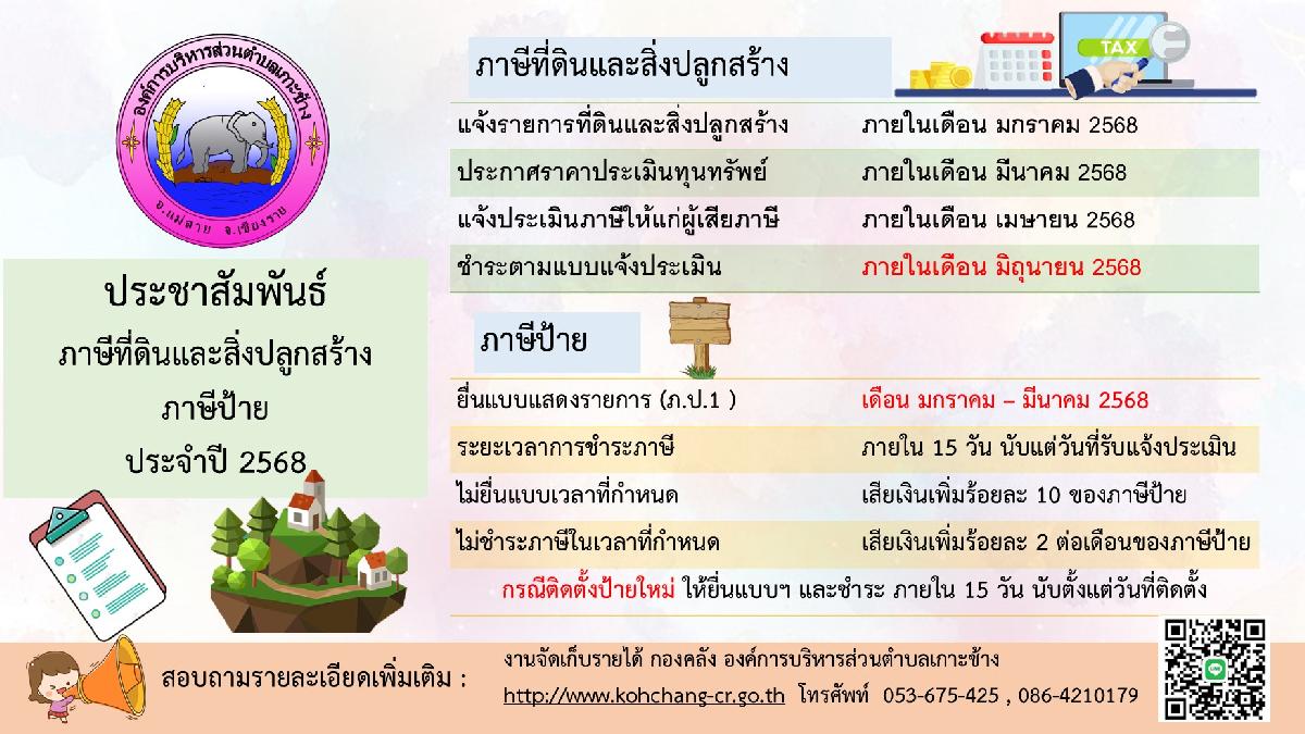 ประชาสัมพันธ์ภาษีป้ายและภาษีที่ดินและสิ่งปลูกสร้าง ประจำปี 2568