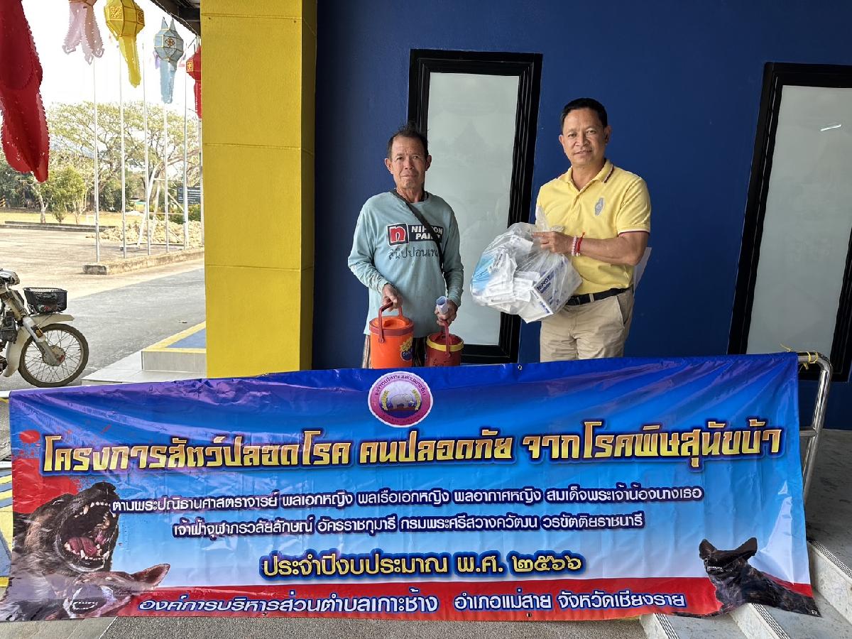 วันที่ 27 กุมภาพันธ์ 2566 เวลา 13.00 น. ร้อยตำรวจเอกเด่นวุฒิ จันต๊ะขัติ นายกองค์การบริหารส่วนตำบลเกาะช้าง มอบหมายให้เจ้าหน้าที่งานป้องกันและบรรเทาสาธารณภัยและเจ้าหน้าที่งานสาธารณสุขและสิ่งแวดล้อมองค์การบริหารส่วนตำบลเกาะช้าง ส่งมอบวัคซีนตามตามโครงการ สัตว์ปลอดโรค คนปลอดภัย จากโรคพิษสุนัขบ้า ประจำปีงบประมาณ 2566 ให้แก่เจ้าหน้าที่ อาสาสมัครสาธารณสุขประจำหมู่บ้าน (อสม.) ในพื้นที่ตำบลเกาะช้าง 13 หมู่บ้าน ณ องค์การบริหารส่วนตำบลเกาะช้าง อำเภอแม่สาย จังหวัดเชียงราย