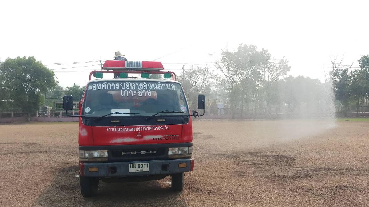 ฉีดพ่นน้ำทำละอองเพื่อลดฝุ่นควันPM2.5ในพื้นที่ตำบลเกาะช้าง