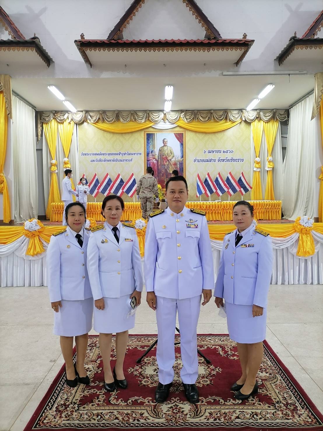 วันที่ 6 เมษายน 2566 เวลา 07.30 น. ร้อยตำรวจเอกเด่นวุฒิ จันต๊ะขัติ นายกองค์การบริหารส่วนตำบลเกาะช้าง มอบหมายให้ นายอนุวัฒน์ พรหมมิ รองนายกองค์การบริหารส่วนตำบลเกาะช้าง พร้อมข้าราชการ พนักงานเจ้าหน้าที่ องค์การบริหารส่วนตำบลเกาะช้าง เข้าร่วมพิธีถวายราชสักการะเนื่องใน "วันพระบาทสมเด็จพระพุทธยอดฟ้าจุฬาโลกมหาราช" และวันที่ระลึกมหาจักรีบรมราชวงศ์ " ประจำปี ๒๕๖๖ ของอำเภอแม่สาย จังหวัดเชียงราย