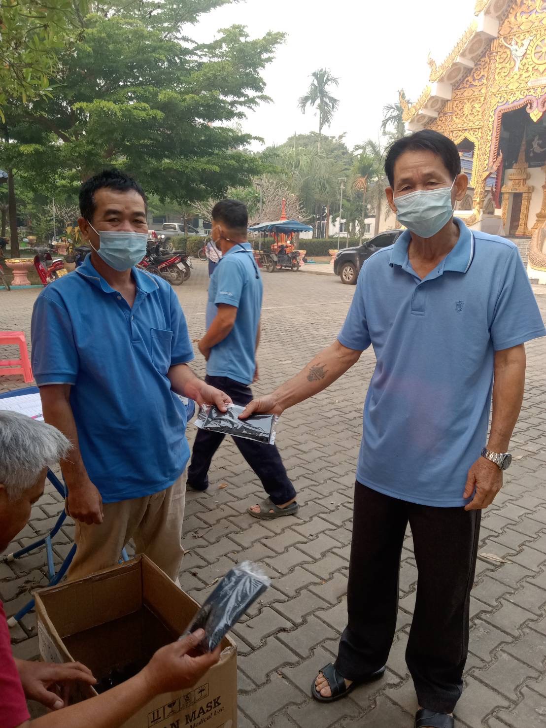 วันที่ 7 เมษายน 2566 ตามโครงการ การป้องกันดูแลสุขภาพจากภับฝุ่นละอองไม่เกิน2.5ไมครอน(PM2.5)โดยชมรมอาสาสมัครสาธารณสุขตำบลเกาะช้าง ร่วมกับกองทุนหลักประกันสุขภาพองค์การบริหารส่วนตำบลเกาะช้าง นำโดยอาสาสมัครสาธารณสุขบ้านปางห้า หมู่ที่ 1 ตำบลเกาะช้าง ร่วมแจกหน้ากากอนามัยป้องกันฝุ่น PM 2.5 ให้กับผู้สูงอายุ ผู้ป่วยติดเตียง กลุ่มเปาะปาง หญิงมีครรภ์หลังคลอดและเด็ก ภายในพื้นที่