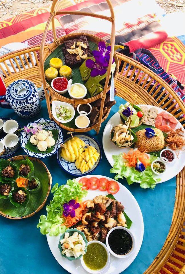 “บ้านสวนอุ้ยคำ” ร้านอาหาร และโฮมสเตย์ที่พักในชุมชนบ้านปางห้า เดินจากจินนาลักษณ์มิราเคิลออฟสาประมาณ 3 นาทีก็ถึงแล้ว เป็นร้านอาหารสไตล์บ้านสวน บรรยากาศสุดร่มรื่น รายล้อมไปด้วยธรรมชาติสวย ๆ ของต้นไม้ ดอกไม้ เสิร์ฟอาหารล้านนาสไตล์ฟิวชั่น แต่รสชาติดั้งเดิม นอกจากนี้ยังมีโฮมสเตย์ที่พักชิล ๆ ไว้บริการอีกด้วยนะ เริ่มด้วยเมนู “แกงฮังเล” (ราคา 118 บาท) เมนูแกงสูตรพิเศษจากคุณแม่ติ๋วเจ้าของร้านบ้านสวนอุ้ยคำ โดยจะใช้สันคอกับสะโพกหมู ตุ๋นด้วยไฟอ่อนทิ้งไว้ประมาณ 2 ชม. จนได้เนื้อเปื่อยนุ่มลิ้น รสชาติเครื่องแกงเข้มข้น กินคู่กับโรตียิ่งดี เสิร์ฟต่อด้วยเมนูฮิต “ข้าวผัดสับปะรด” (ราคา 178 บาท) ใช้สับปะรดภูแลของดีเชียงราย เครื่องอัดแน่นไปด้วยกุ้ง สับปะรด มะม่วงหิมพานต์ ลูกเกด นำมาคลุกเคล้ากับผงกะหรี่หอม ๆ และโรยหน้าด้วยไก่หยอง ยกทัพเมนูเด็ดอีกเพียบ“ผัดไทย” (ราคา 88 บาท) เมนูนี้คนกินมังสวิรัติสามารถกินได้ เพราะเขานำเส้น ไข่ เต้าหู้ ถั่วงอก กุยช่าย และตั้งฉ่าย ผัดรวมกับน้ำซอสสูตรเจที่ปรุงเอง ท็อปด้วยไข่ เสิร์ฟคู่กับเครื่องเคียงผัดไทยต่าง ๆ ต่อด้วย “แกงฟักทอง” (ราคา 98 บาท) และปิดท้ายด้วยเมนู “ยำกระเจี๊ยบแดง” (ราคา 128 บาท) ใช้ดอกกระเจี๊ยบมาปรุงเป็นอาหาร ใส่เครื่องยำปกติ เพิ่มความเค็มด้วยเกลือกับซีอิ๊ว เพิ่มรสเปรี้ยวด้วยมะนาวและมะขามเปียก