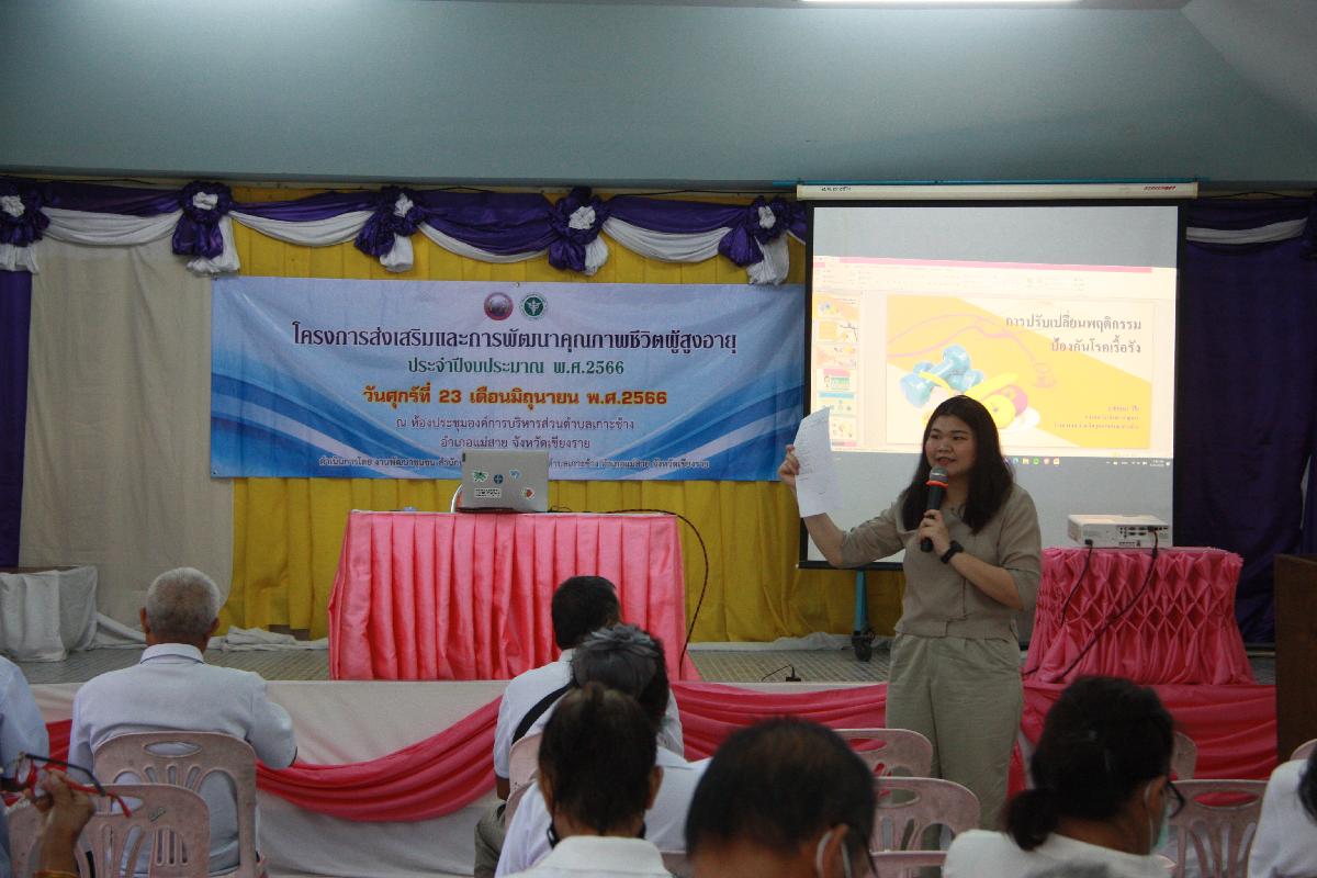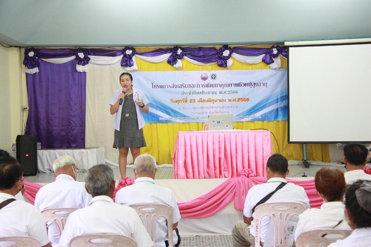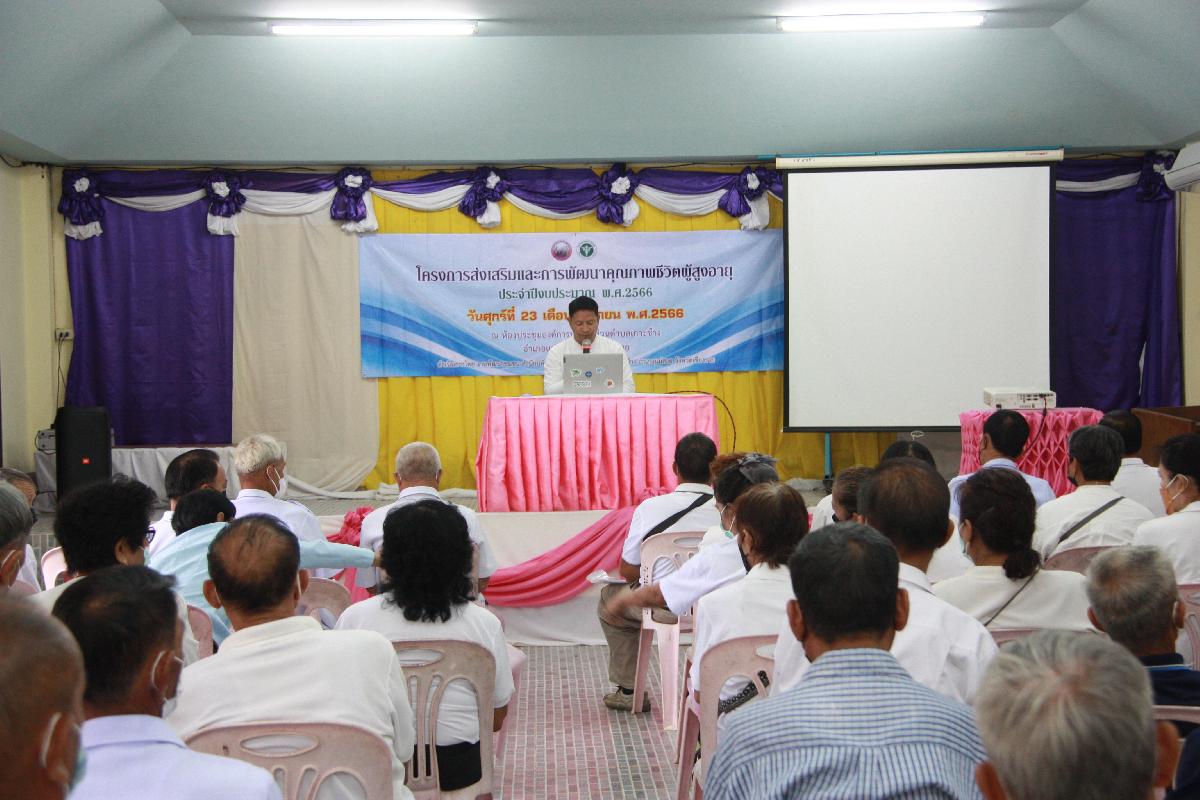 วันที่ 23 มิถุนายน 2566 เวลา 08.00 น. องค์การบริหารส่วนตำบลเกาะช้าง นำโดย ร้อยตำรวจเอกเด่นวุฒิ จันต๊ะขัติ นายกองค์การบริหารส่วนตำบลเกาะช้าง พร้อม งานพัฒนาชุมชน สำนักปลัดองค์การบริหารส่วนตำบลเกาะช้าง จัดโครงการส่งเสริมและการพัฒนาคุณภาพชีวิตผู้สูงอายุ ประจำปีงบประมาณ พ.ศ. 2566 ณ