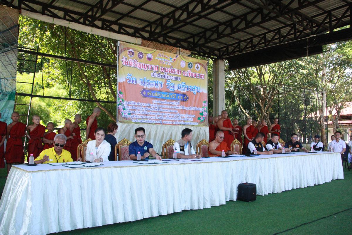 วันที่ 31 สิงหาคม 2566 เวลา 09.00 น. องค์การบริหารส่วนตำบลเกาะช้าง นำโดย ร้อยตำรวจเอกเด่นวุฒิ จันต๊ะขัติ นายกองค์การบริหารส่วนตำบลเกาะช้าง ร่วมลงนามบันทึกข้อตกลง(MOU)ว่าด้วยความร่วมมือดำเนินงานโครงการวัด ประชา รัฐ สร้างสุข สร้างสัปปายะด้วยแนว ๕ ส.และร่วมกิจกรรม Big Cleaning Day องค์การบริหารส่วนตำบลเกาะช้าง ร่วมกับ วัดหิรัญญาวาส และโรงเรียนบ้านเหมือง แดงน้อย ได้ดำเนินโครงการวัด ประชา รัฐ สร้างสุข เพื่อการพัฒนาที่ยั่งยืน ร่วมกับ สมาชิกสภาองค์การบริหารส่วนตำบลเกาะช้าง หัวหน้าส่วนราชการ กำนัน ผู้ใหญ่บ้าน และภาคีเครือข่ายทุกภาคส่วน ณ วัดหิรัญญาวาส บ้านเหมืองแดงน้อย ตำบลเกาะช้าง อำเภอแม่สาย จังหวัดเชียงราย