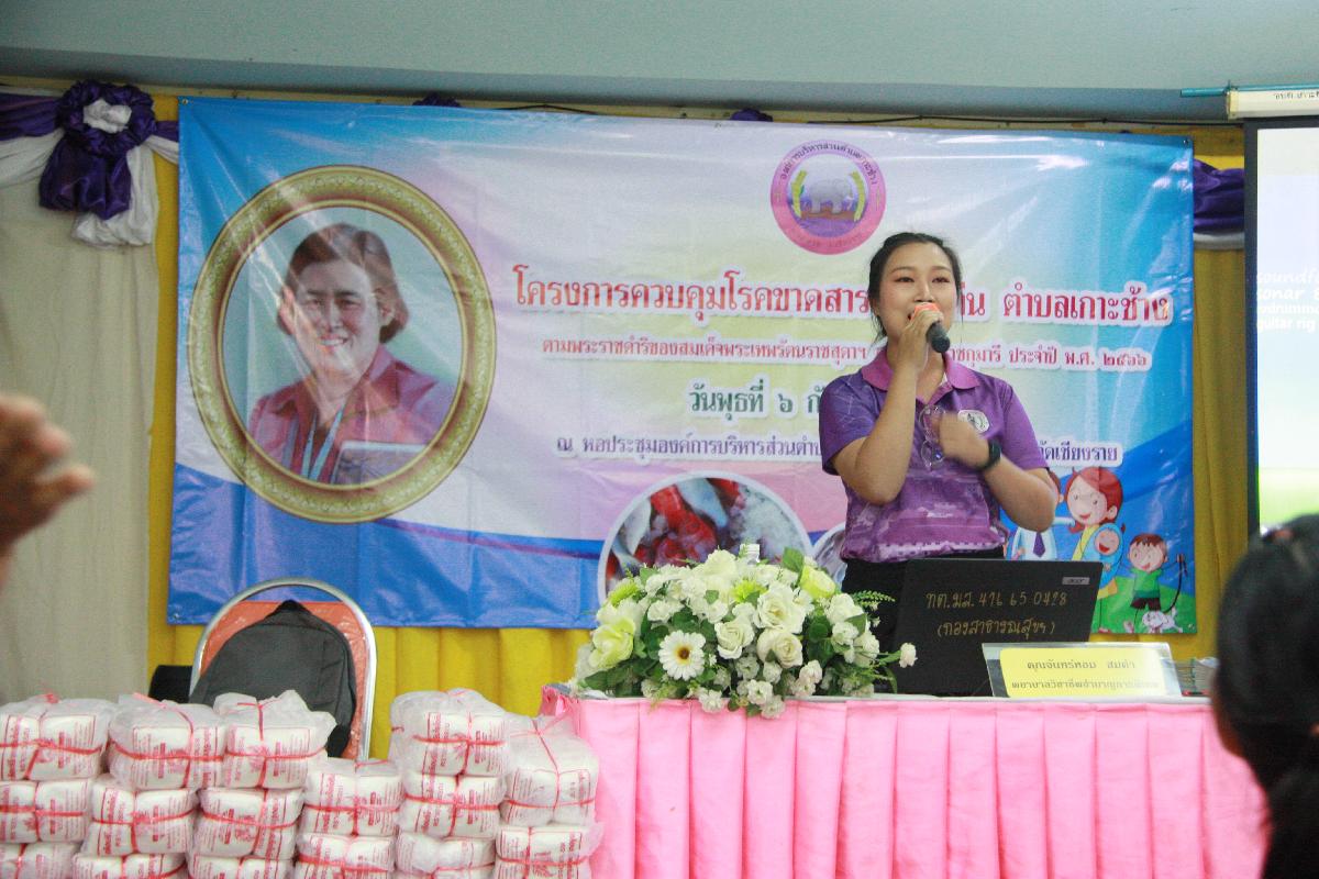 วันที่ 6 กันยายน 2566 เวลา 09.00 น. องค์การบริหารส่วนตำบลเกาะช้าง นำโดย ร้อยตำรวจเอกเด่นวุฒิ จันต๊ะขัติ นายกองค์การบริหารส่วนตำบลเกาะช้าง พร้อม นางสาวดวงพร โพธิ์ศรี นักวิเคราะห์นโยบายและแผน และบุคลากรเจ้าหน้าที่องค์การบริหารส่วนตำบลเกาะช้าง ร่วมจัดกิจกรรมอบรมโครงการควบคุมโรคขาดสารอาหาร ไอโอดีน ตำบลเกาะช้าง ตามพระราชดำริของสมเด็จพระเทพรัตนราชสุดาฯ สยามบรมราชกุมารี ประจำปี พ.ศ. 2566 แก่ประชาชนตำบลเกาาะช้าง ณ หอประชุมองค์การบริหารส่วนตำบลเกาะช้าง