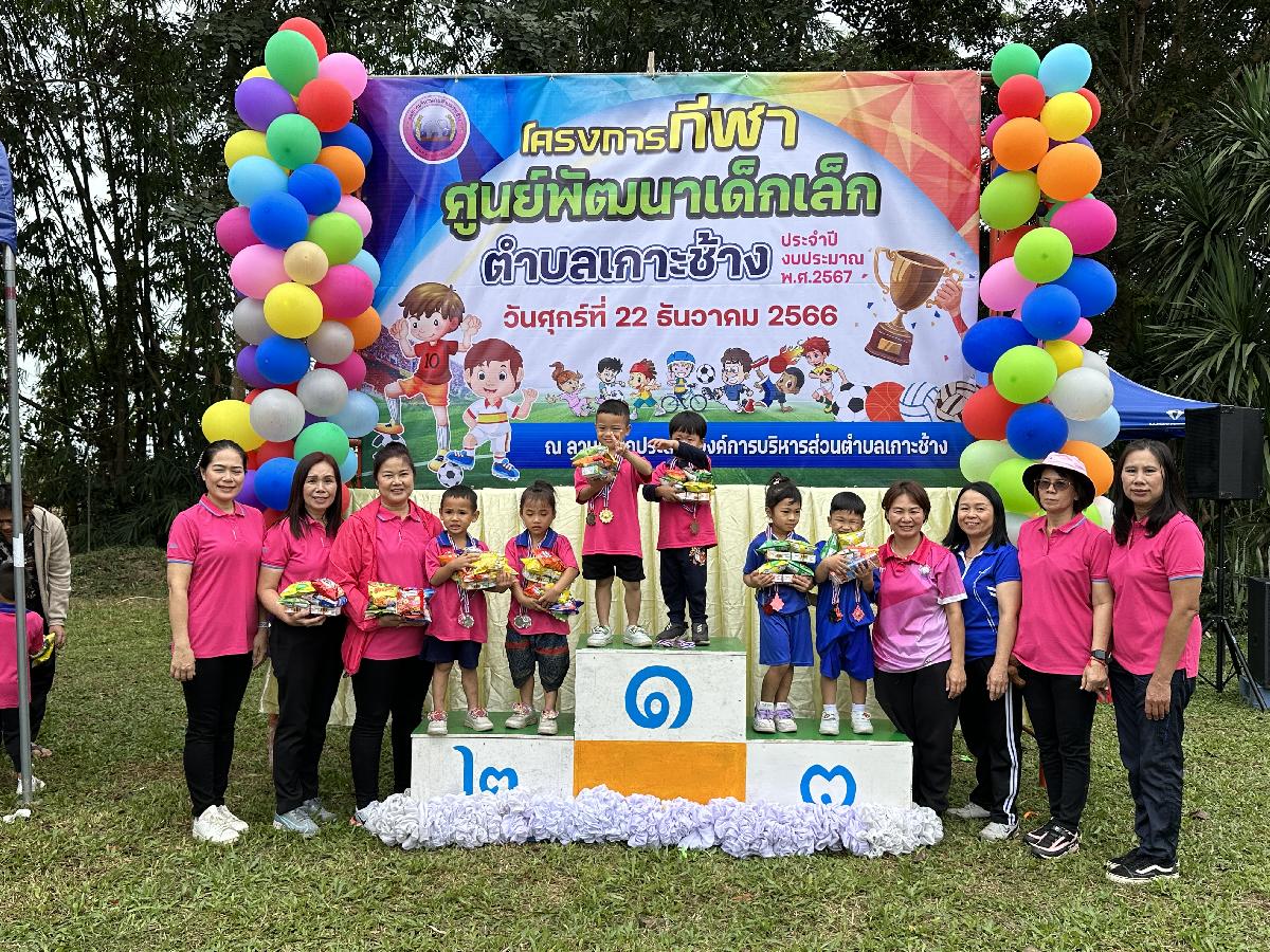 วันที่ 22 ธันวาคม 2566 เวลา 08.30 น.องค์การบริหารส่วนตำบลเกาะช้าง นำโดย ร้อยตำรวจเอกเด่นวุฒิ จันต๊ะขัติ นายกองค์การบริหารส่วนตำบลเกาะช้าง พร้อมด้วยสมาชิกสภาองค์การบริหารส่วนตำบลเกาะช้าง กองการศึกษาศาสนาและวัฒนธรรม และบุคลากรองค์การบริหารส่วนตำบลเกาะช้าง ร่วมจัดกิจกรรมโครงการกีฬาศูนย์พัฒนาเด็กเล็กตำบลเกาะช้าง ณ องค์การบริหารส่วนตำบลเกาะช้าง