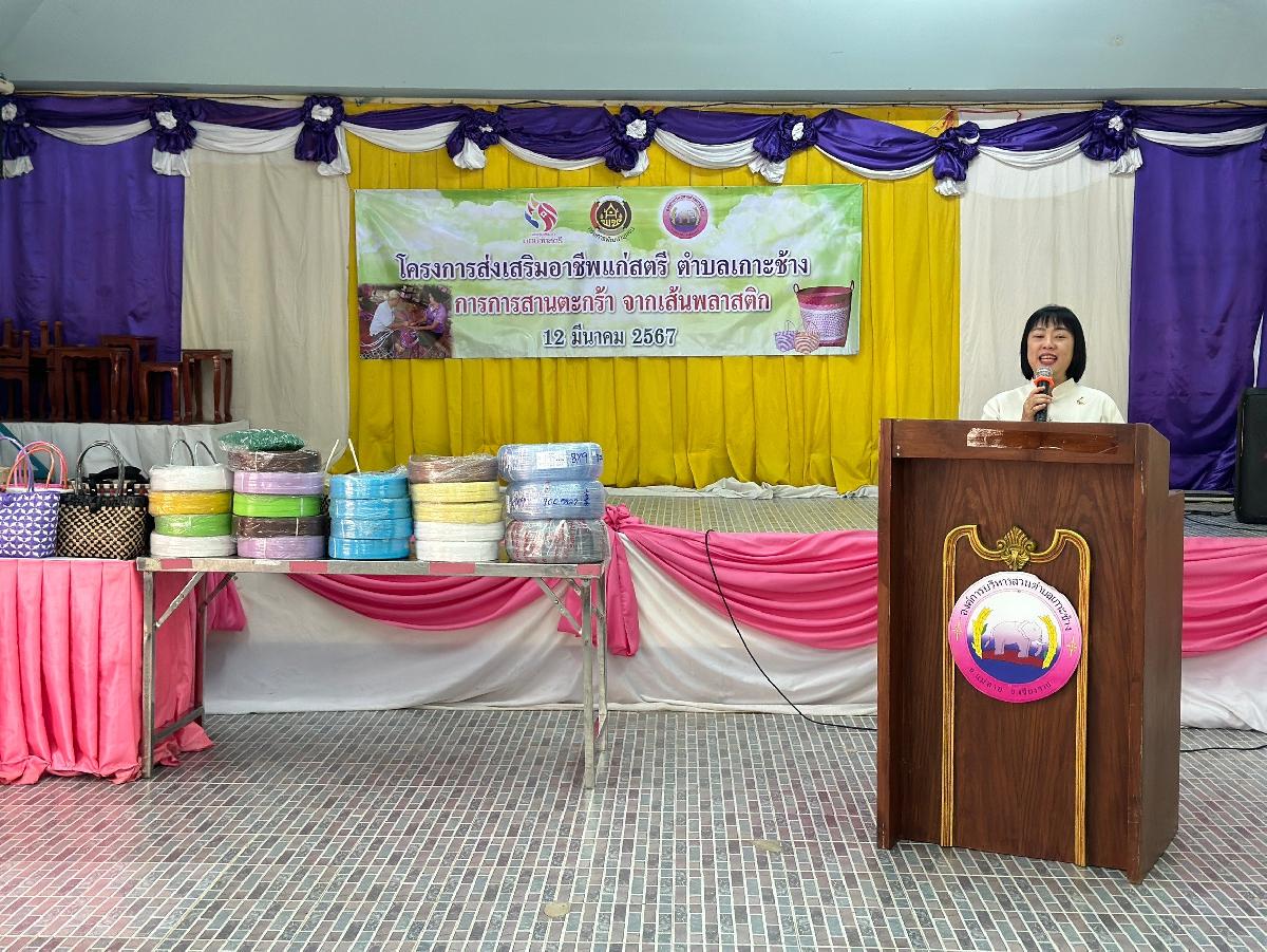 วันที่ 12 มีนาคม 2567 เวลา 09.30 น. ร้อยตำรวจเอกเด่นวุฒิ จันต๊ะขัติ นายกองค์การบริหารส่วนตำบลเกาะช้าง พร้อม คณะผู้บริหาร ร่วมพิธีเปิดกิจกรรมโครงการส่งเสริมอาชีพแก่สตรีตำบลเกาะช้าง การสานตระกร้าจากเส้นพลาสติก โดยมี นางประพิมพา วัฒนา พัฒนาการอำเภอแม่สายเป็นประธานเปิดกิจกรรมโครงการฯ ณ หอประชุมองค์การบริหารส่วนตำบลเกาะช้าง