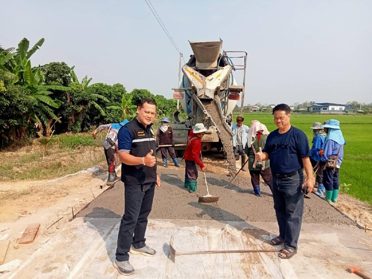 ร่วมพื้นที่ติดตามความคืบหน้าการก่อสร้างถนนคอนกรีตเสริมเหล็กบ้านสันหลวงใต้ หมู่ที่ 13 ตำบลเกาะช้าง
