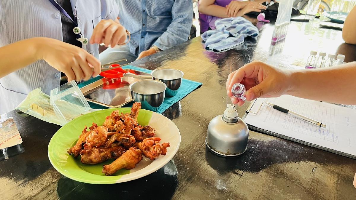 ร่วมกับ โรงพยาบาลส่งเสริมสุขภาพประจำตำบลเกาะช้าง ลงพื้นที่ตรวจสอบความสะอาดของสถานที่และสารปนเปื้อนตามภาชนะที่ใช้ในการประกอบอาหารสำหรับแจกจ่ายประชาชนในการเฝ้ารับเสด็จฯ พระบาทสมเด็จพระเจ้าอยู่หัว และสมเด็จพระนางเจ้าฯ พระบรมราชินี เนื่องในโอกาสเสด็จมาทรงประกอบพิธีตัดหวายลูกนิมิตอุโบสถบุญชุ่มรัตนปุรีศรีธรรมราชา วัดพระธาตุดอยเวียงแก้ว อ.เชียงแสน จ.เชียงราย ในวันที่ 30 มี.ค.2567 ณ บ้านป่าแดงหลวง หมู่ 11 ตำบลเกาะช้าง