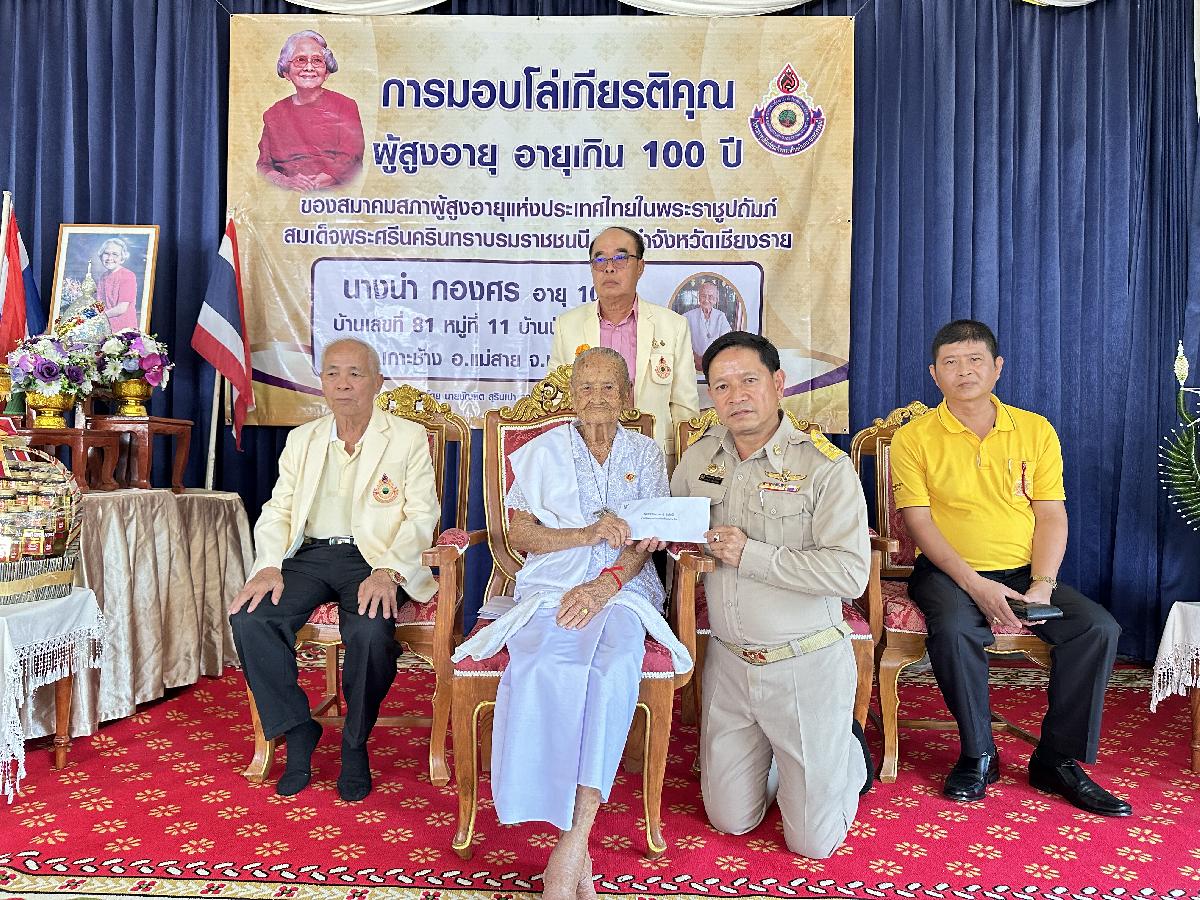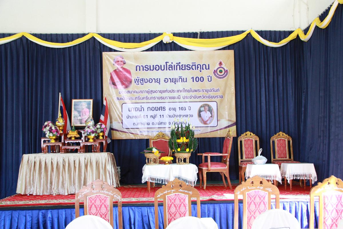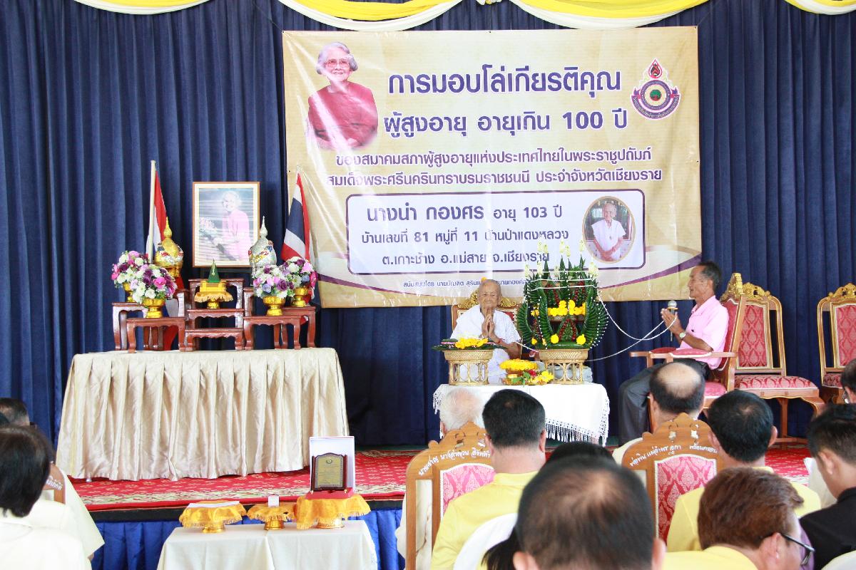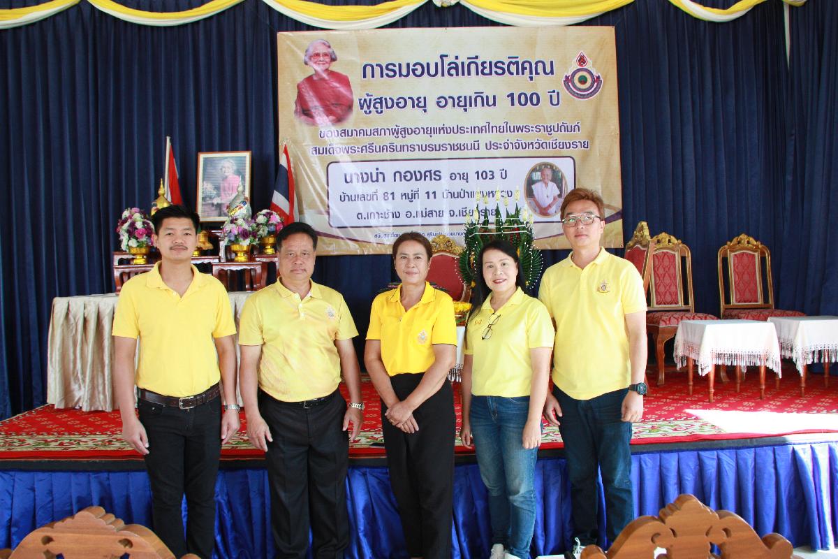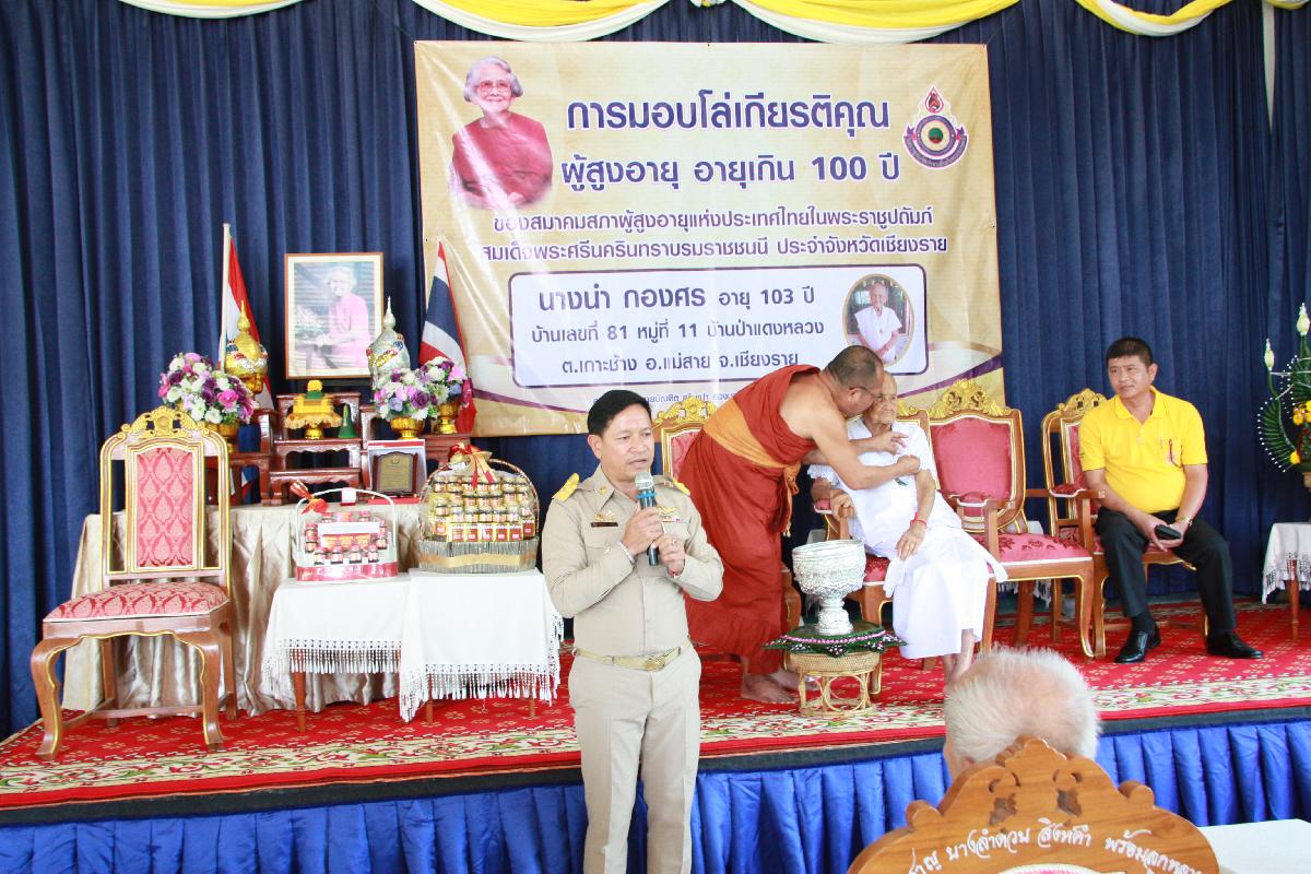 มอบโล่เชิดเกียรติคุณและเข็มกลัดสมเด็จย่าให้แก่ผู้สูงอายุเกิน 100 ปี ให้แก่ แม่อุ้ยนำ กองศร อายุ 103 ปี ณ อาคารอเนกประสงค์บ้านป่าแดงหลวง หมู่ 11 ตำบลเกาะช้าง