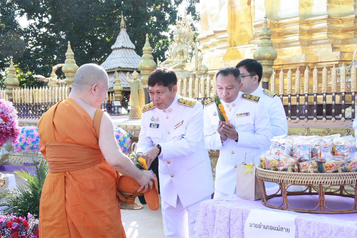 ร่วมกิจกรรมเฉลิมพระเกียรติพระบาทสมเด็จพระเจ้าอยู่หัวเนื่องในโอกาสพระราชพิธีสมมงคลพระชนมายุเท่าพระบาทสมเด็จพระพุทธยอดฟ้าจุฬาโลกมหาราช สมเด็จพระปฐมบรมกษัตริยาธิราชแห่งราชวงศ์จักกรี พุทธษักราช 2568 ณ วัดพระธาตุดอยเวา ตำบลเวียงพางคำ อำเภอแม่สาย จังหวัดเชียงราย