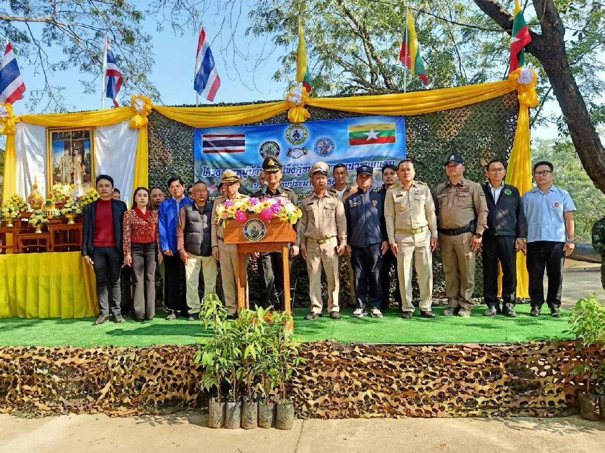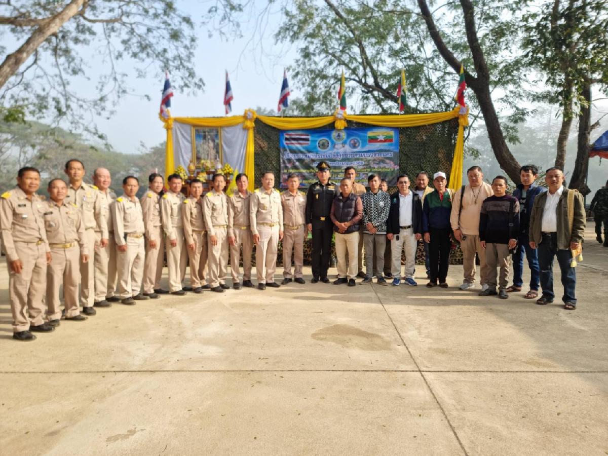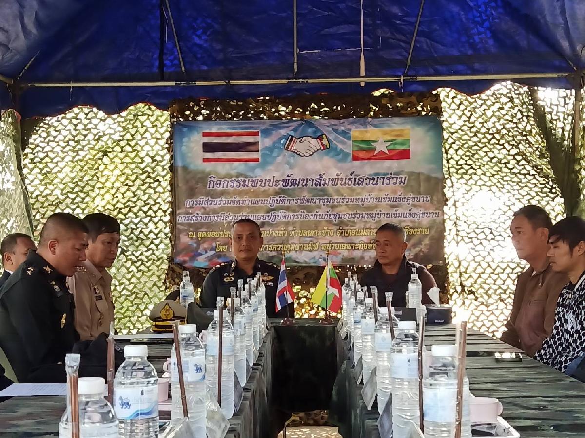 ชมรมกำนันผู้ใหญ่บ้านตำบลเกาะช้าง และชาวบ้านไทย-เมียนมา ณ จุดผ่อนปรนบ้านปางห้า หมู่ที่ 1 ตำบลเกาะช้าง