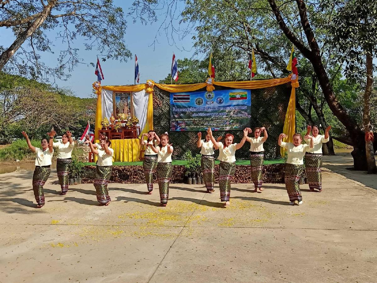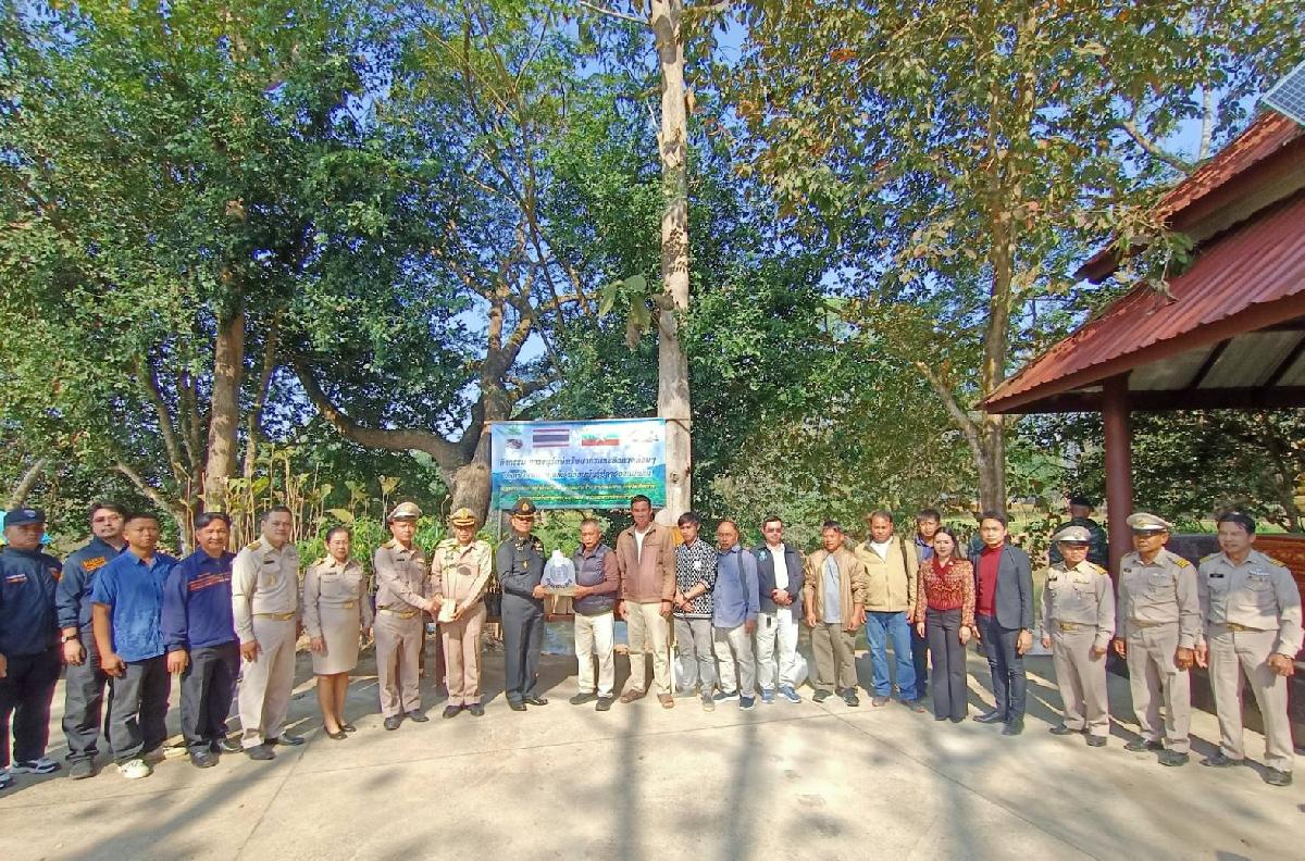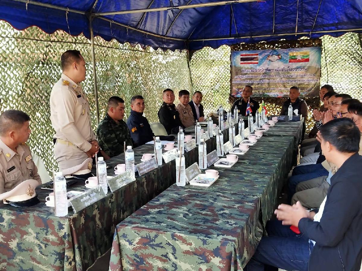 ชมรมกำนันผู้ใหญ่บ้านตำบลเกาะช้าง และชาวบ้านไทย-เมียนมา ณ จุดผ่อนปรนบ้านปางห้า หมู่ที่ 1 ตำบลเกาะช้าง