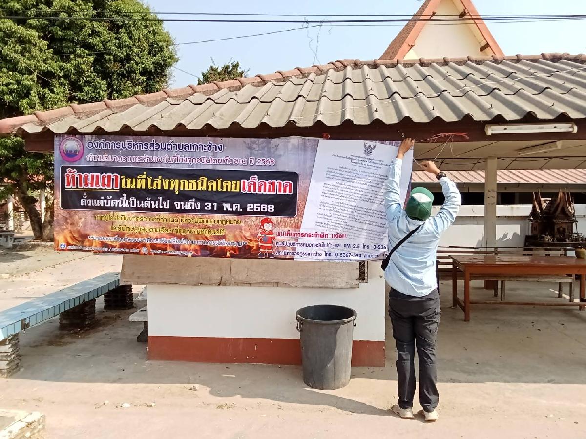 วันที่ 20 กุมภาพันธ์ 2568 เวลา 09.00 น. งานป้องกันและบรรเทาสาธารณภัย สำนักปลัด องค์การบริหารส่วนตำบลเกาะช้าง ทำการติดตั้งป้ายประชาสัมพันธ์ห้ามเผาในที่โล่งแจ้งทุกชนิดโดยเด็ดขาด ภายในพื้นที่ตำบลเกาะช้าง