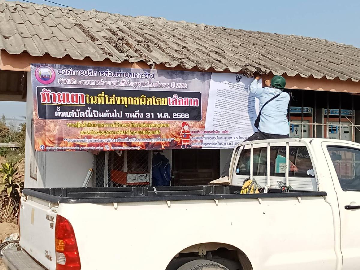 ติดตั้งป้ายประชาสัมพันธ์ห้ามเผาในที่โล่งแจ้งทุกชนิดโดยเด็ดขาด