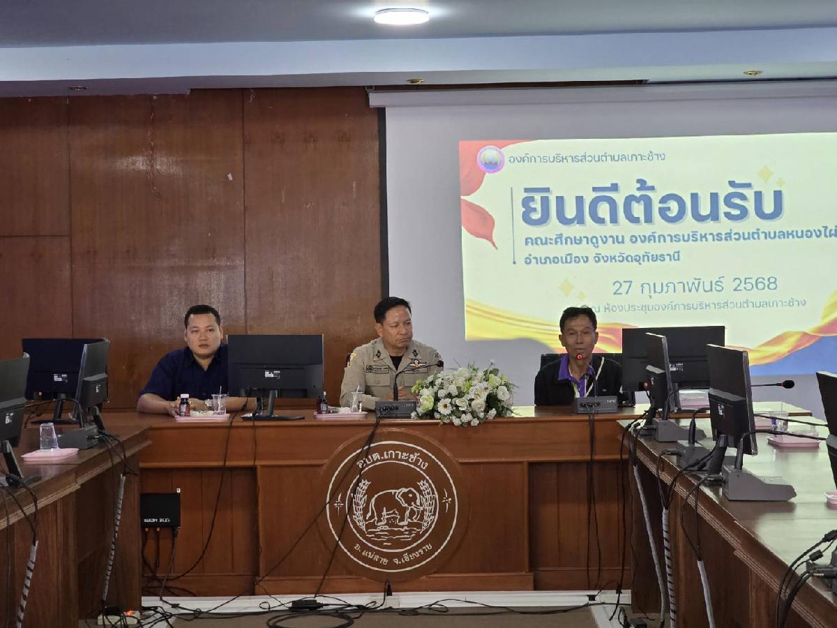 วันที่ 27 กุมภาพันธ์ 2568 เวลา 13.00 น. องค์การบริหารส่วนตำบลเกาะช้าง นำโดยร้อยตำรวจเอกเด่นวุฒิ จันต๊ะขัติ นายกองค์การบริหารส่วนตำบลเกาะช้าง พร้อมคณะผู่บริหาร หัวหน้าส่วนราชการ ร่วมต้อนรับคณะศึกษาดูงานจากองค์การบริหารส่วนตำบลหนองไผ่แบน อำเภอเมือง จังหวัดอุทัยธานี ณ