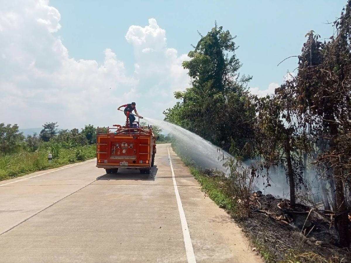 ลงพื้นที่เหตุไฟไหม้บริเวณข้างทางระหว่างวัดพระสาน-ม่วงคำ