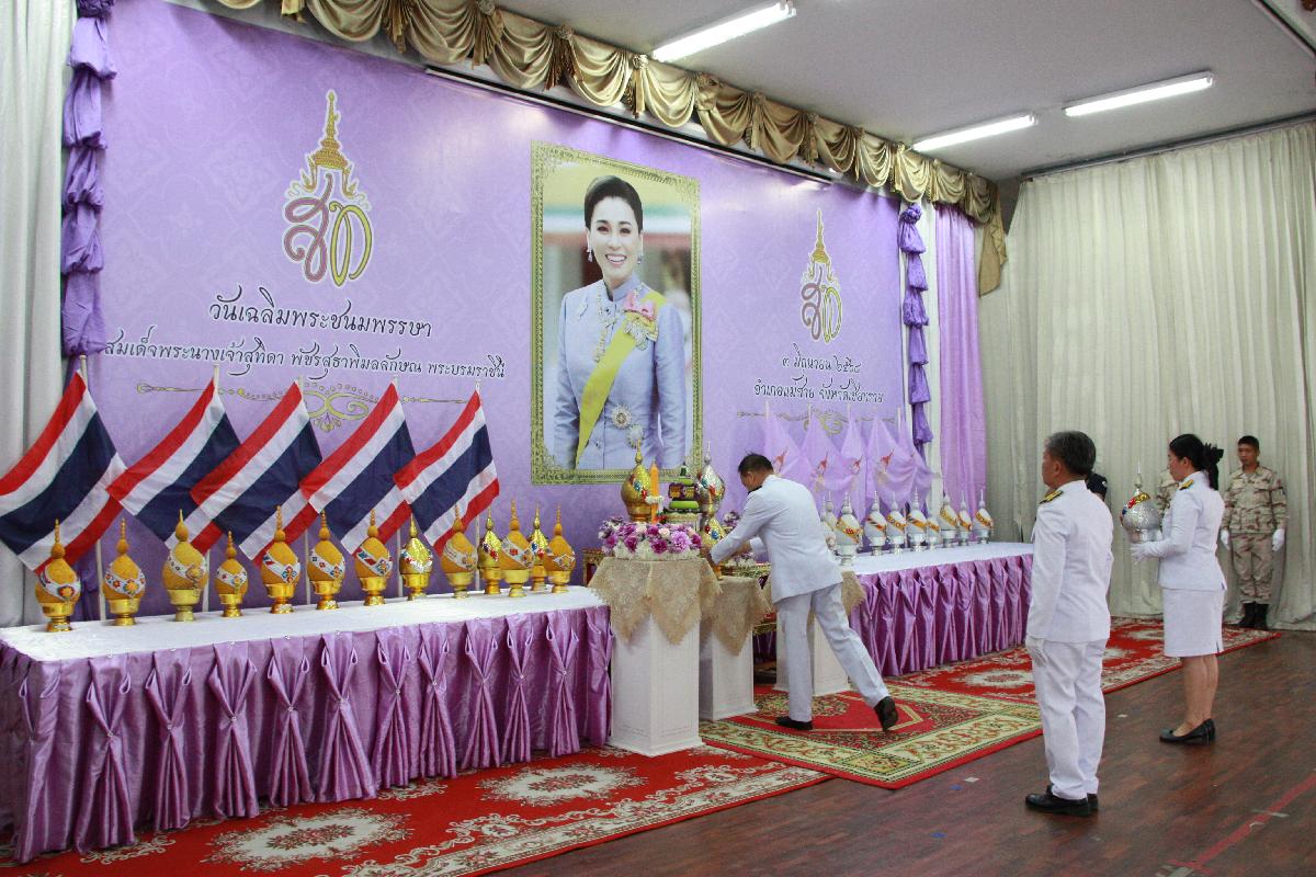 ร่วมพิธีถวายเครื่องราชสักการะและวางพานพุ่ม และพิธีจุดเทียนชัยถวายพระพรชัยมงคล เนื่องในโอกาสวันเฉลิมพระชนมพรรษา สมเด็จพระนางเจ้าสุทิดา พัชรสุธาพิมลลักษณ พระบรมราชินี ณ หอประชุมที่ว่าการอำเภอแม่สาย อำเภอแม่สาย จังหวัดเชียงราย