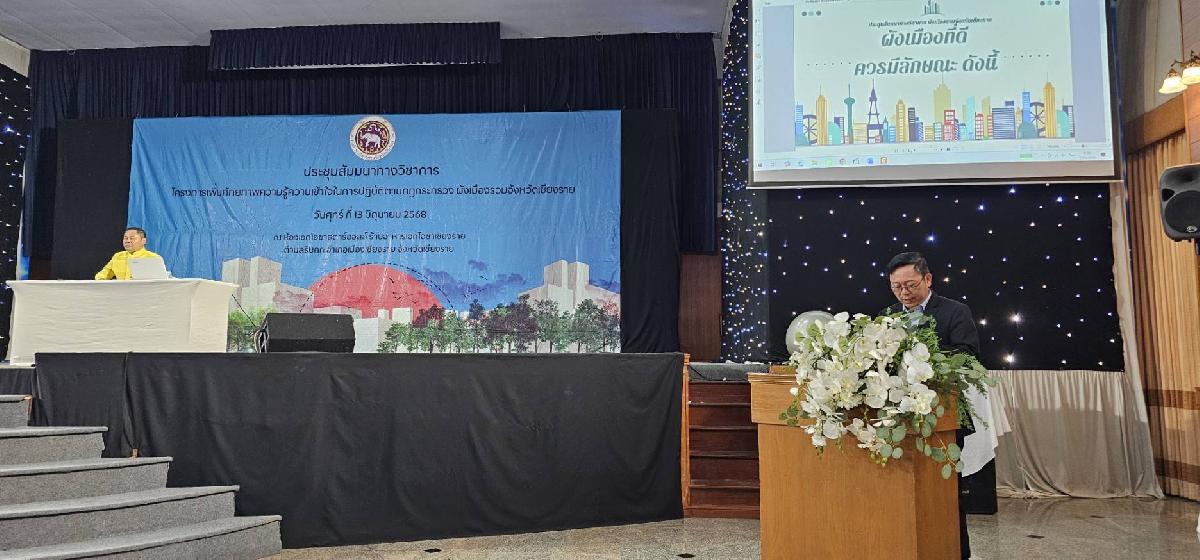 ร่วมประชุมสัมนาทางวิชาการโครงการเพิ่มศักยภาพความรู้ความเข้าใจในการปฏิบัติตามกฎกระทรวง ผังเมืองรวมจังหวัดเชียงราย ณ ห้องเอกโอชาสตาร์ฮอลล์ ร้านอาหารเอกโอชาเชียงราย ตำบลริมกก อำเภอเมืองเชียงราย จังหวัดเชียงราย