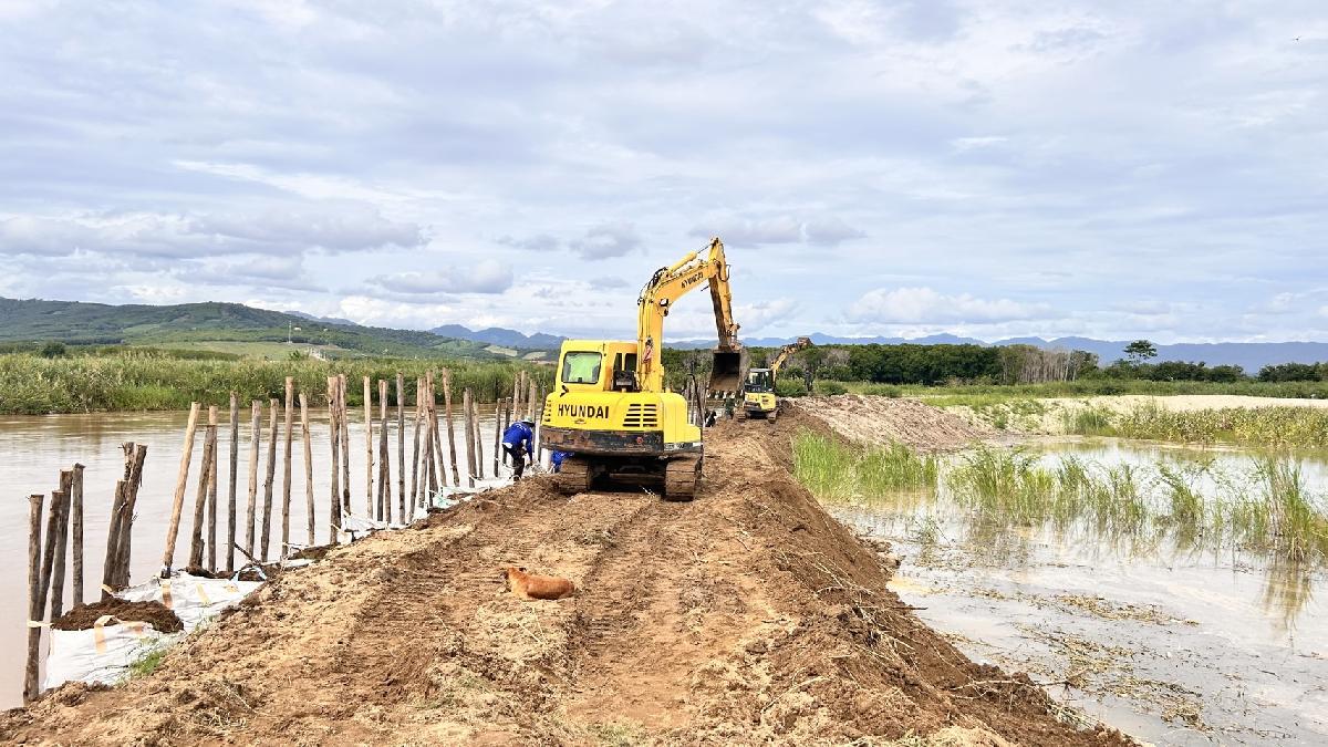 นายกองค์การบริหารส่วนตำบลเกาะช้าง พร้อม คณะผู้บริหารลงพื้นที่ติดตามปริมาณน้ำในแม่น้ำรวก พร้อมทั้งติดตามการซ่อมคันพนังกั้นน้ำรวก แนวทางการซ่อมแซมโดยดำเนินการฝังเสาแล้วนำกระสอบบิ๊กแบ็คบรรจุทรายซ่อมคันพนังกันน้ำเพื่อไม่ให้น้ำไหลทะลักเข้าพื้นที่ทำการเกษตรของชาวบ้าน