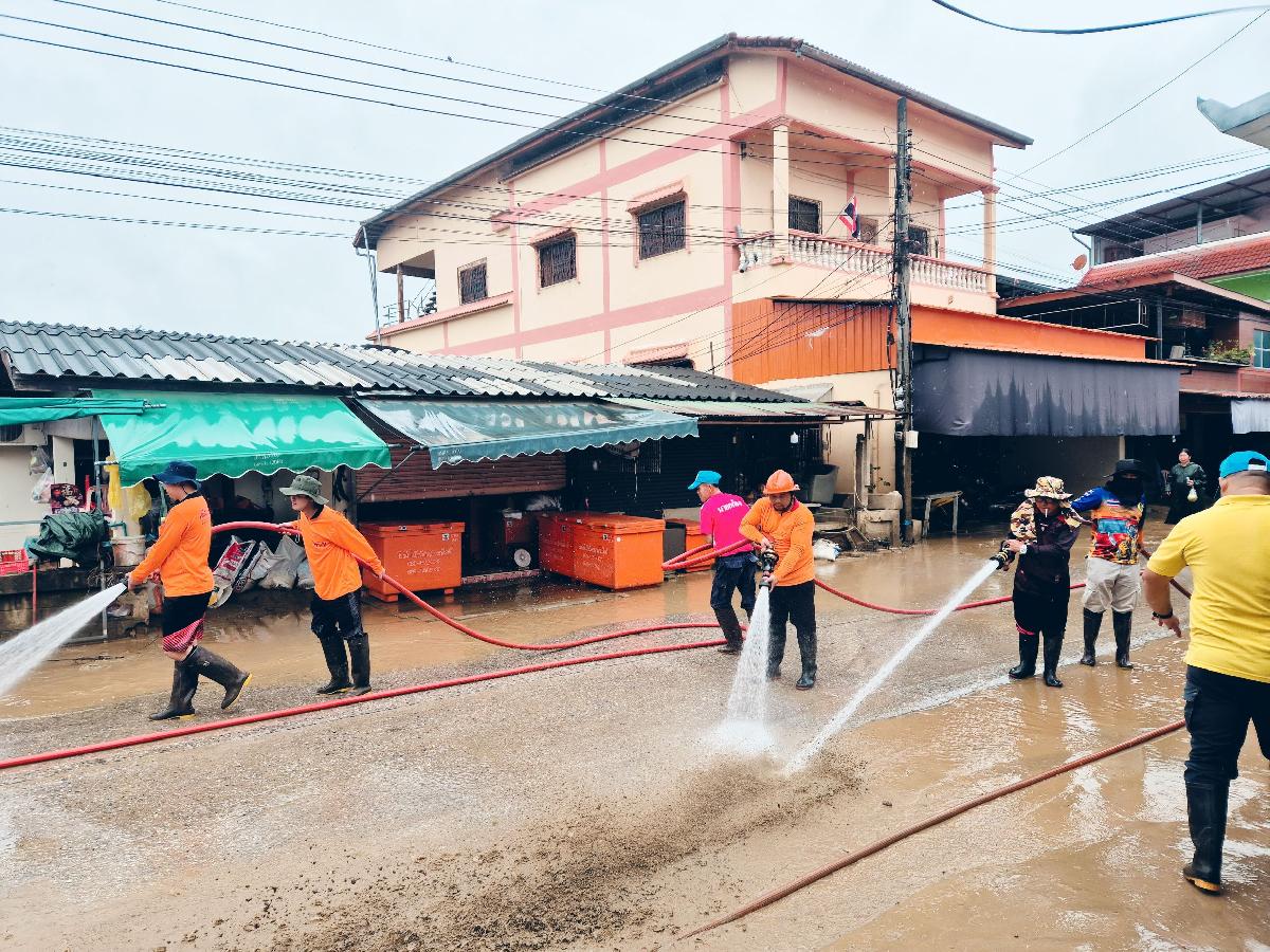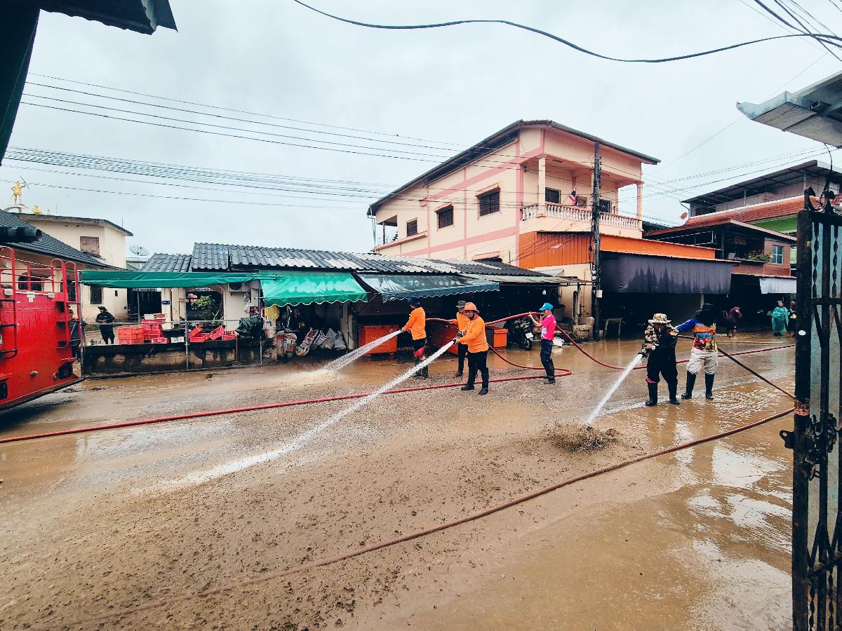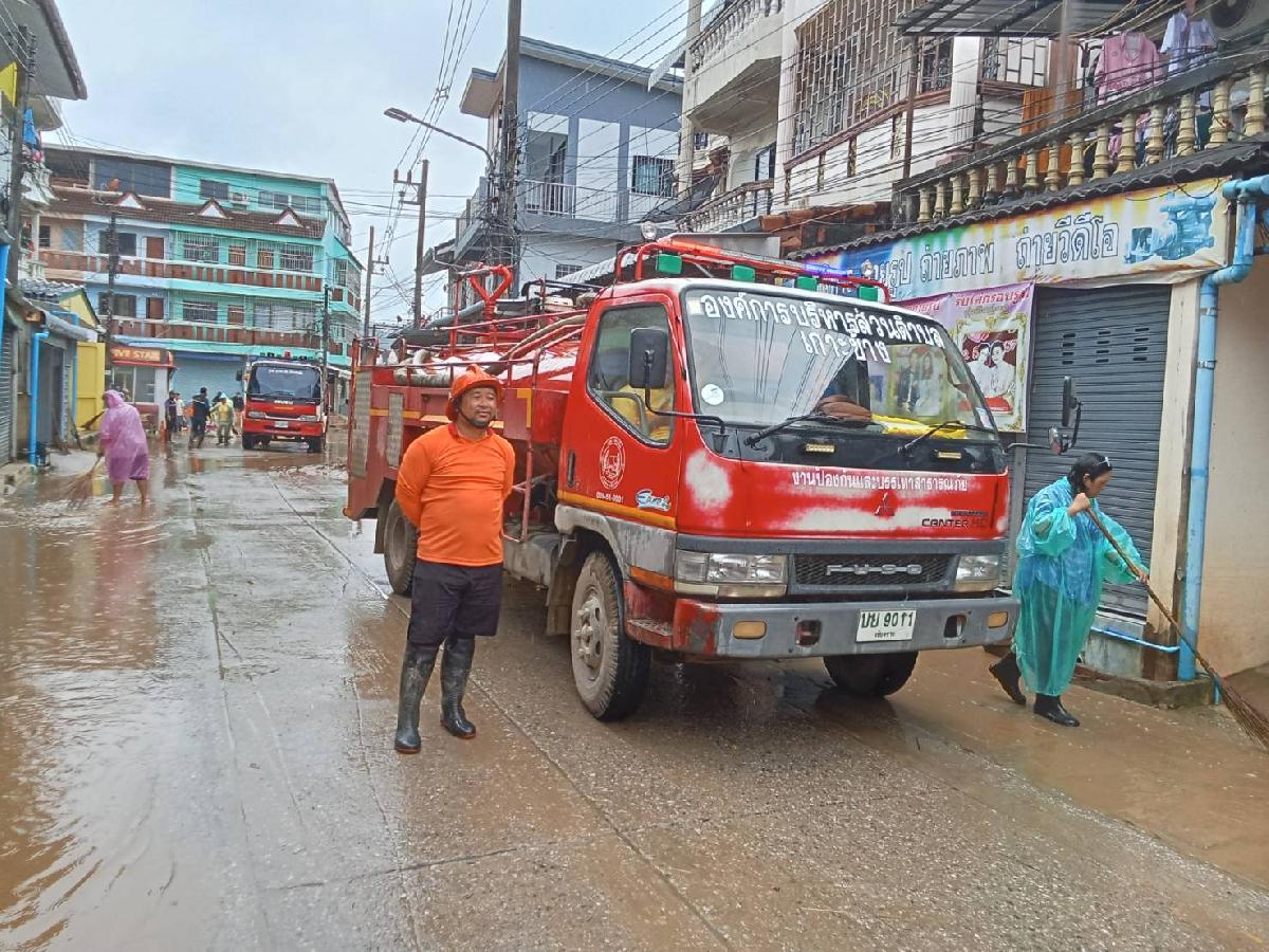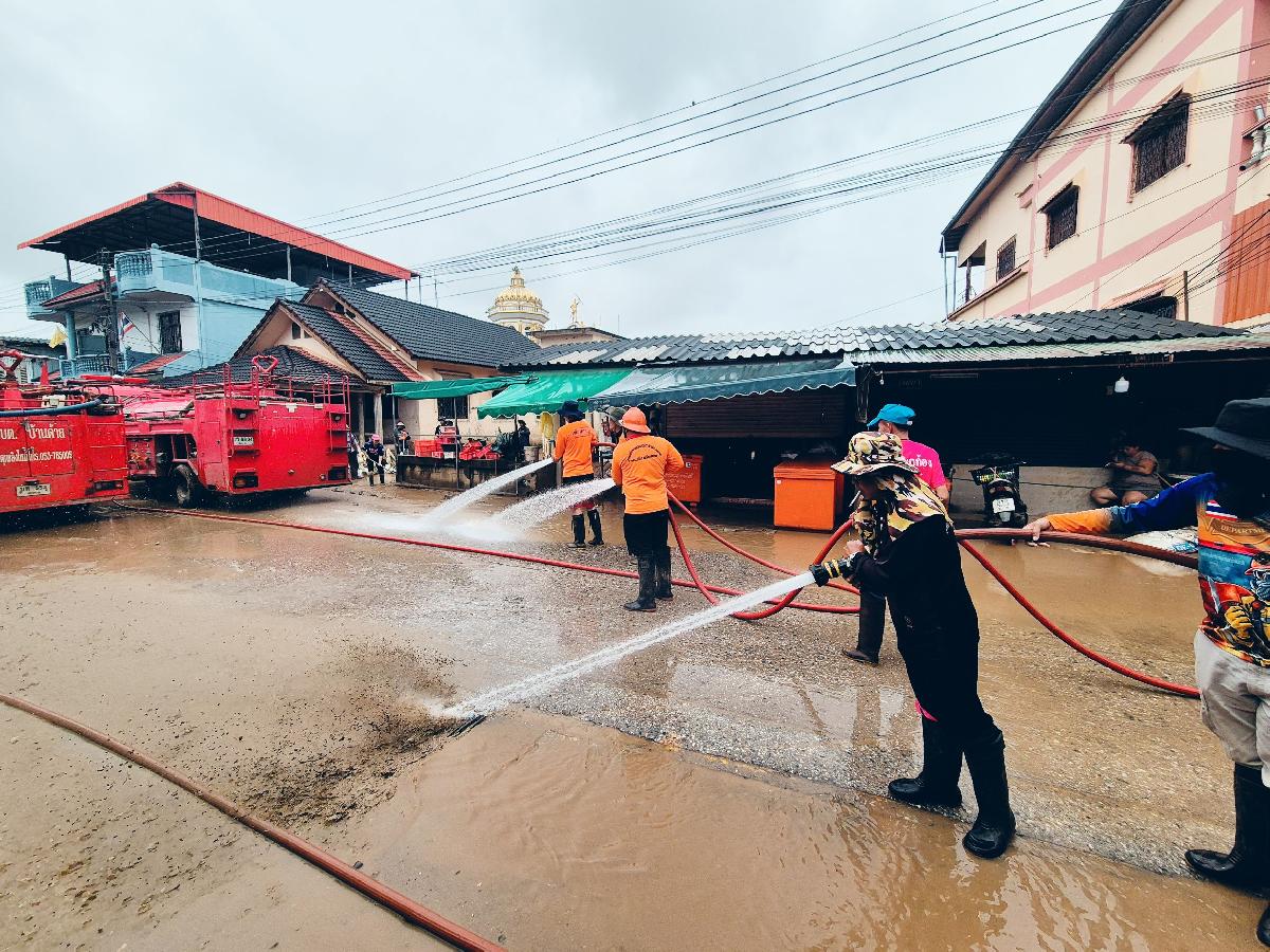 วันที่ 6 สิงหาคม 2568 เวลา 08.30 น.ร้อยตำรวจเอกเด่นวุฒิ จันต๊ะขัติ องค์การบริหารส่วนตำบลเกาะช้าง พร้อม เจ้าหน้าที่งานป้องกันและบรรเทาสาธารณภัย สำนักปลัดองค์การบริหารส่วนตำบลเกาะช้าง นำรถบรรทุกน้ำดับเพลิงลงพื้นที่ สนับสนุนฟื้นฟูเขตพื้นที่ประสบเหตุอุทกภัยในพื้นที่อำเภอแม่สาย จังหวัดเชียงราย
