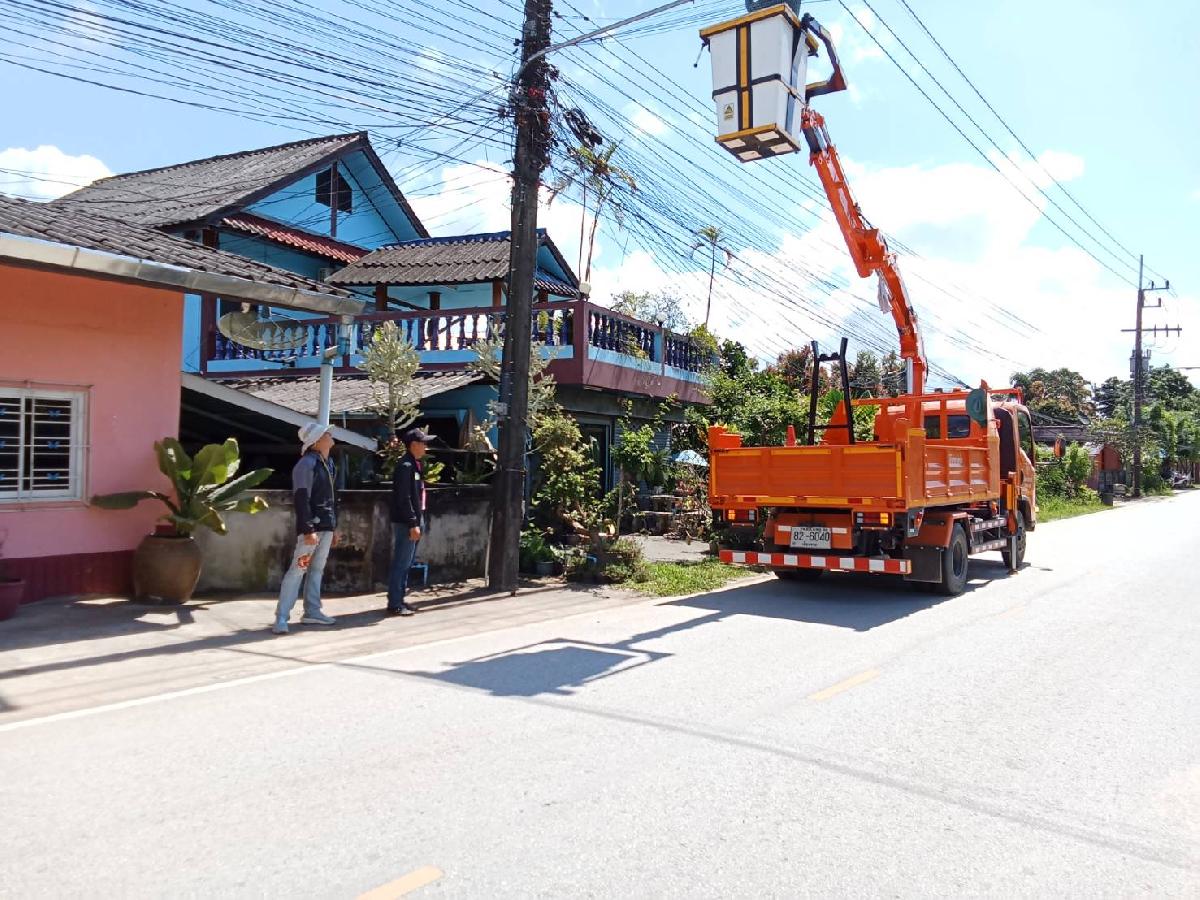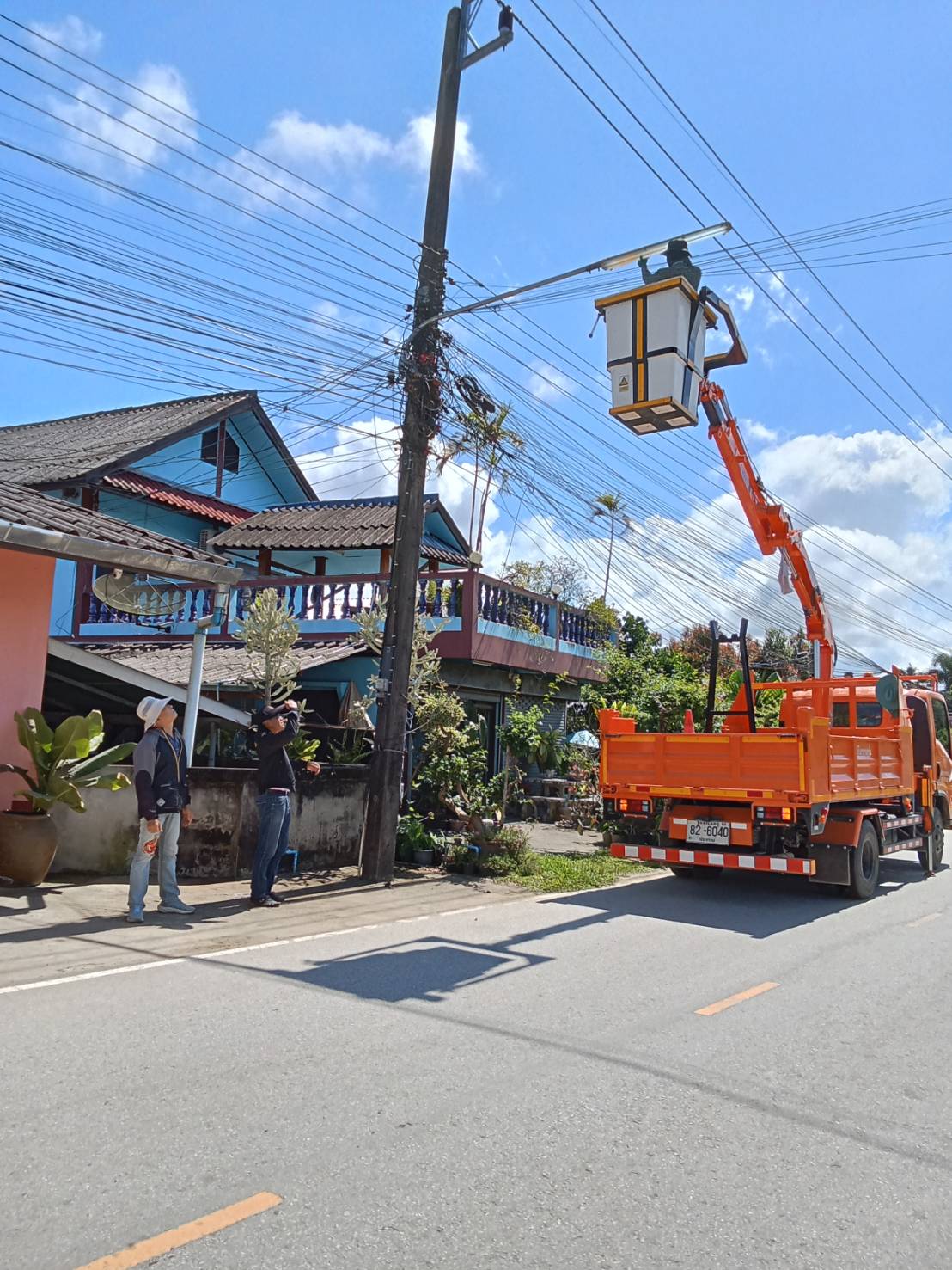 รถกระเช้าไฟฟ้าออกพื้นที่บริการซ่อมไฟกิ่งสาธารณะบ้านสันหลวงหมูที่4