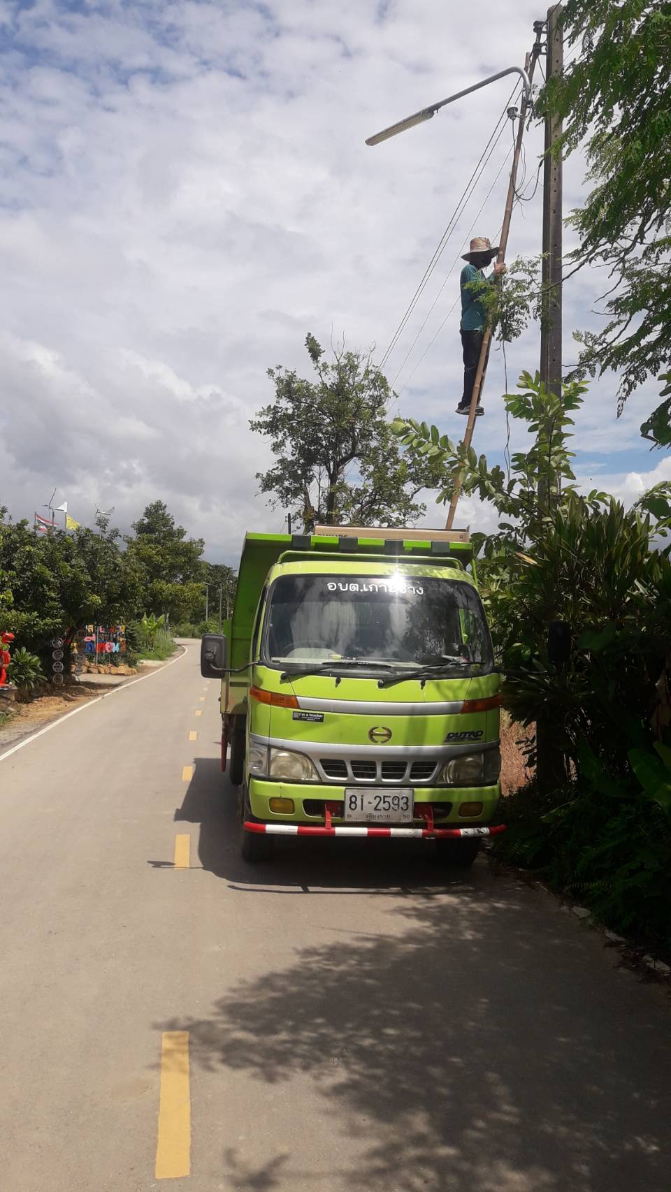 นายกองค์การบริหารส่วนตำบลเกาะช้าง มอบหมาย นายภูวนาท พรหมมาลี ผู้ช่วยนายช่างไฟฟ้าองค์การบริหารส่วนตำบลเกาะช้าง ออกซ้อมแซมไฟกิ่ง บ้านสันหลวง หมู่ 4 บ้านม่วงคำ หมู่ 7 ตำบลเกาะช้าง อำเภอแม่สาย จังหวัดเชียงราย เพื่อส่องสว่างทางให้กับพ่อแม่พี่น้องและประชาชนทั่วไป เดินทางได้สะดวกและปลอดภัย