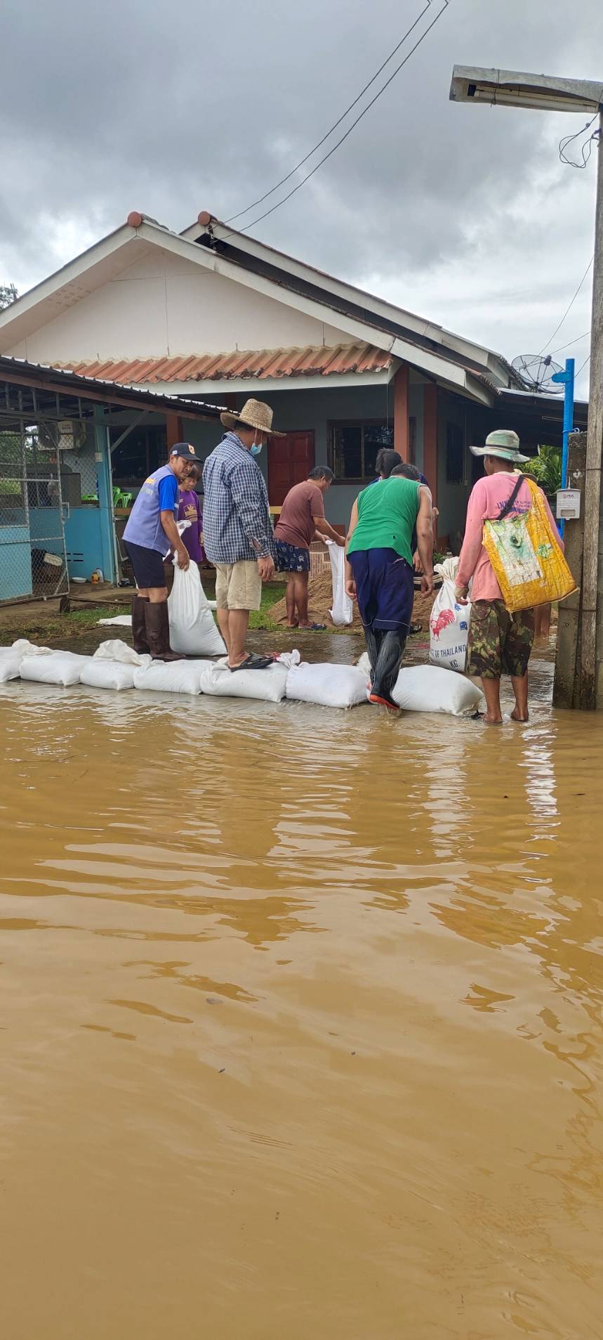 #ปฏิบัติภารกิจ ลงพื้นที่ช่วยเหลือ ชาวบ้านที่เกิดอุทกภัย พายุฝน "มู่หลาน" นำกระสอบใส่ทราย เพื่อกันทางน้ำไม่ให้เข้าบ้านของชาวบ้าน บ้านสันนา หมู่ 2 ตำบลเกาะช้าง อำเภอแม่สาย จังหวัดเชียงราย และลงสำรวจน้ำล้นตลิ่ง บ้านสันนา หมู่ 2