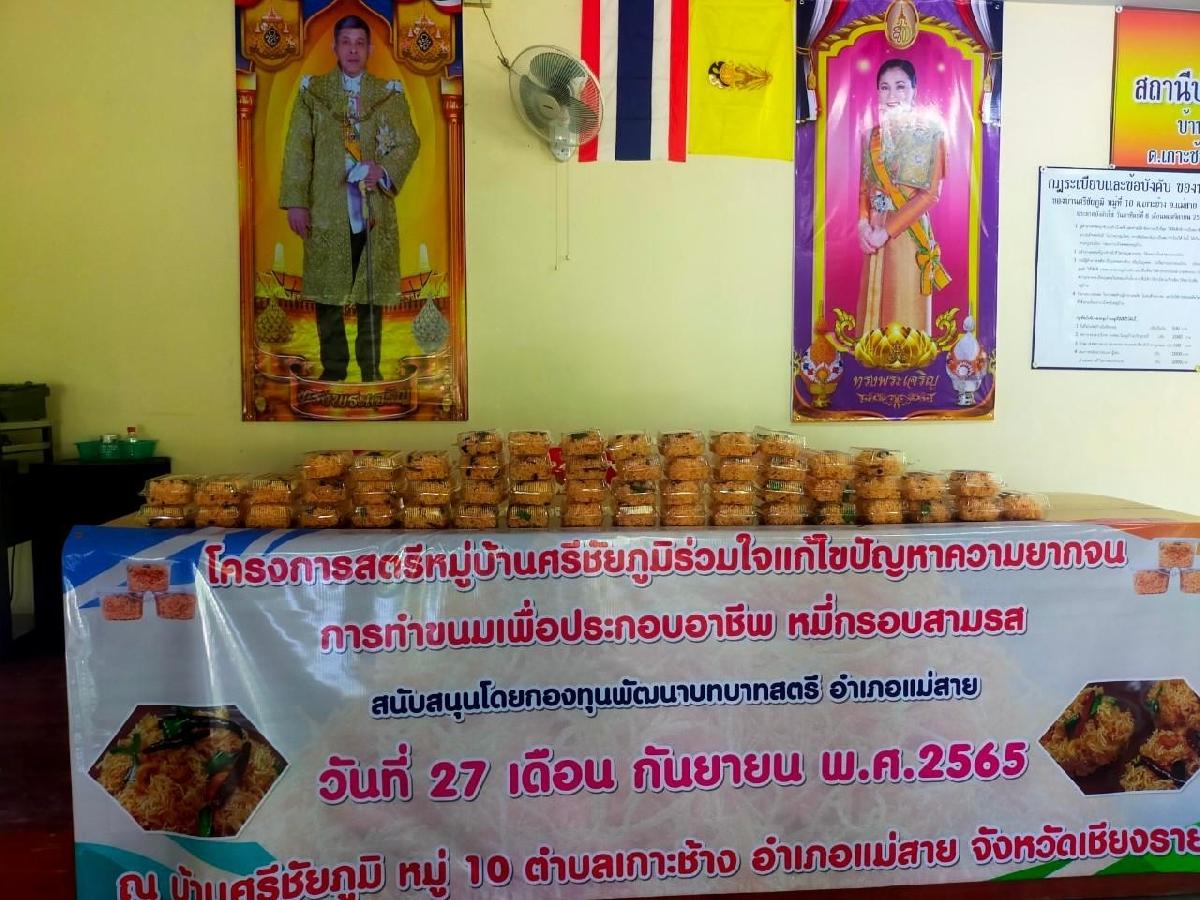 วันอังคาร ที่ 27 กันยายน 2565 เวลา 13.00 น. ร้อยตำรวจเอกเด่นวุฒิ จันต๊ะขัติ นายกองค์การบริหารส่วนตำบลเกาะช้าง มอบหมายให้ นางสาวสรัญญา เปียงตั้ง นักพัฒนาชุมชนชำนาญการ สำนักปลัดองค์การบริหารส่วนตำบลเกาะช้าง เข้าร่วมโครงการการสตรีหมู่บ้านศรีชัยภูมิร่วมใจแก้ไขปัญหาความยากจนการทำขนมเพื่อประกอบอาชีพหมี่กรอบสามรส สนับสนุนโดยกองทุนพัฒนาบทบาทสตรี อำเภอแม่สาย ร่วมกับกลุ่มพัฒนาสตรีบ้านศรีชัยภูมิ ณ บ้านศรีชัยภูมิ หมู่ที่ 10 ตำบลเกาะช้าง อำเภอแม่สาย จังหวัดเชียงราย