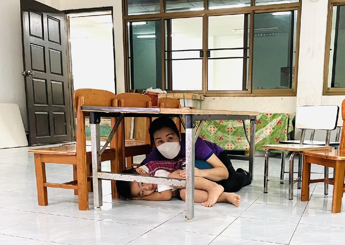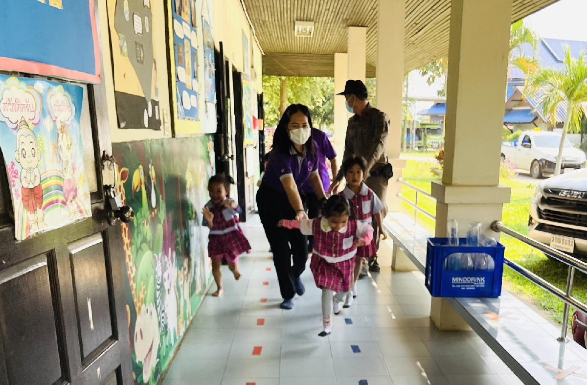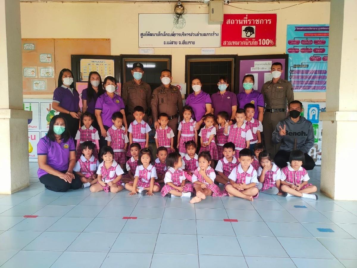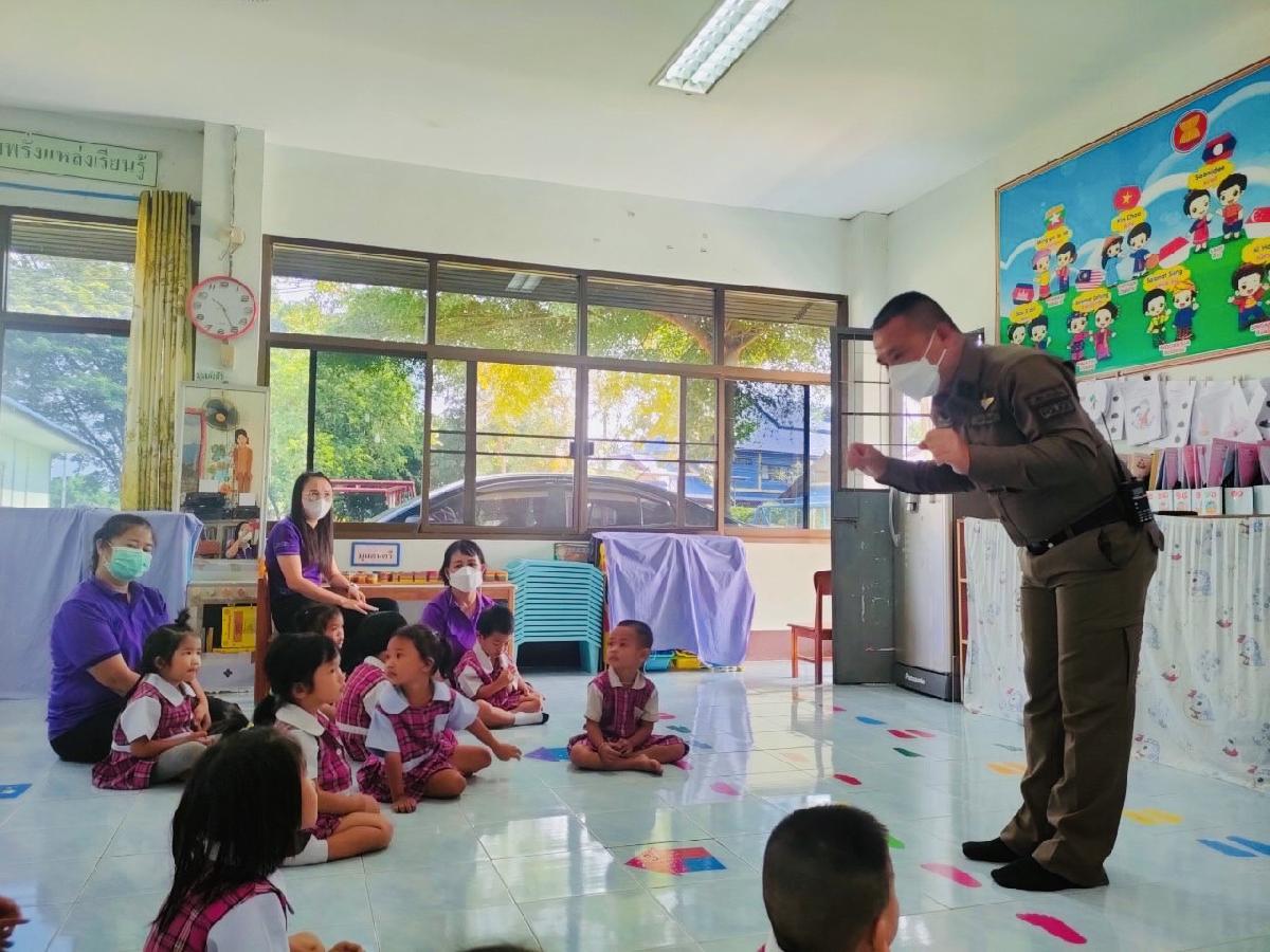 เจ้าหน้าที่ตำรวจสถานีตำรวจภูธรเกาะช้างเข้าสอนวิธีการช่วยเหลือเด็กเพื่อป้องกันการเกิดเหตุร้ายในศูนย์พัฒนาเด็กเล็ก