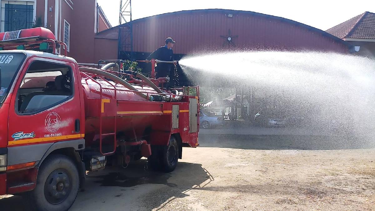 รถบรรทุกน้ำออกให้บริกหารประชาชนพรมน้ำโบสถ์คริสตจักรบ้านศรีชัยภูมิหมู่ 10