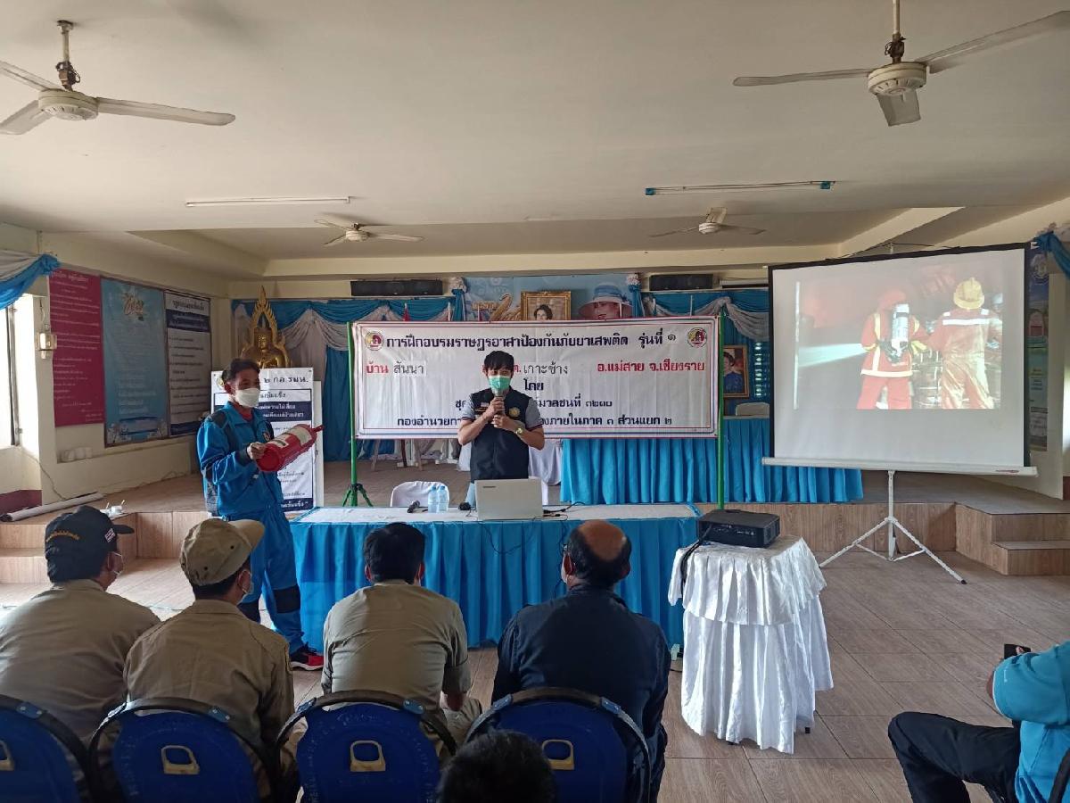 วันที่ 21 มกราคม 2566 เวลา 09.30 น. ร้อยตำรวจเอกเด่นวุฒิ จันต๊ะขัติ นายกองค์การบริหารส่วนตำบลเกาะช้าง มอบหมายให้ นายยุทธวี สุภาแก้ว นักป้องกันและเบาเทาสาธารณภัย พร้อมเจ้าหน้าที่องค์การบริหารส่วนตำบลเกาะช้าง เป็นวิทยากร ร่วมกับหน่วยงานทหาร ผู้นำชุมชน เพื่อให้ความรู้เกี่ยวกับการดับเพลิงและวิธีการใช้ถังดับเพลิง แก่เจ้าหน้าที่ชุดรักษาความปลอดภัยหมู่บ้าน(ชรบ.) อาสาสมัครป้องกันภัยฝ่ายพลเรือน (อปพร.) และ อาสาสมัครสาธารณสุขประจำหมู่บ้าน (อสม.) ณ บ้านสันนา หมู่ 2 ตำบลเกาะช้าง อำเภอแม่สาย จังหวัดเชียงราย