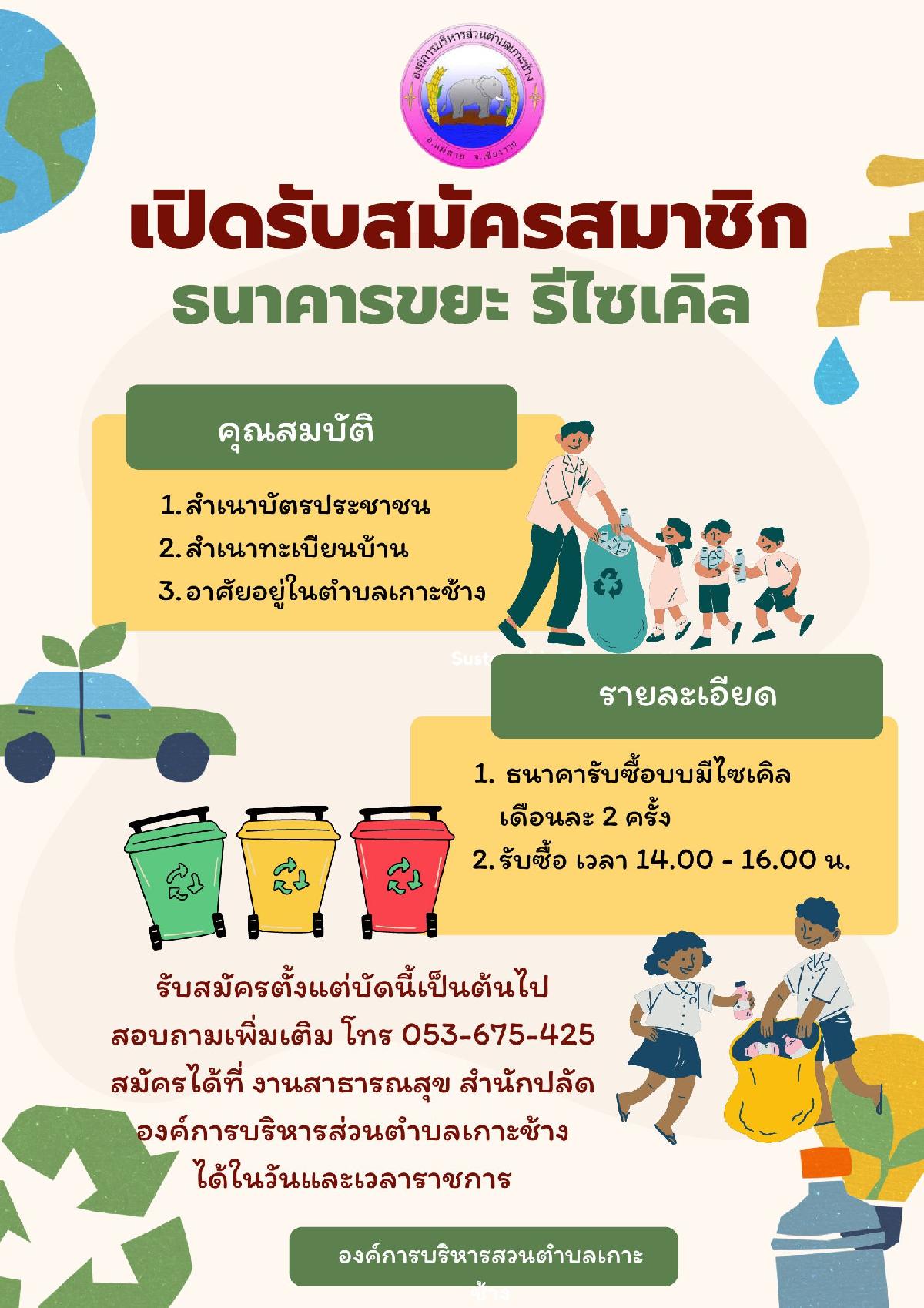 ขอเชิญชวนประชาชนที่สนใจ เข้าร่วมสมัครสมาชิก "ธนาคารขยะรัไซเคิล" ตั้งแต่วันนี้เป็นต้นไป