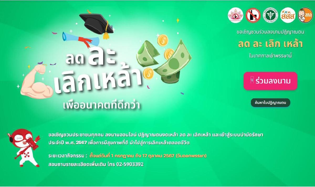 ลงนามออนไลน์ ปฏิญาณตนงดเหล้า ลด ละ เลิกเหล้า เนื่องใน “วันงดดื่มสุราแห่งชาติ”