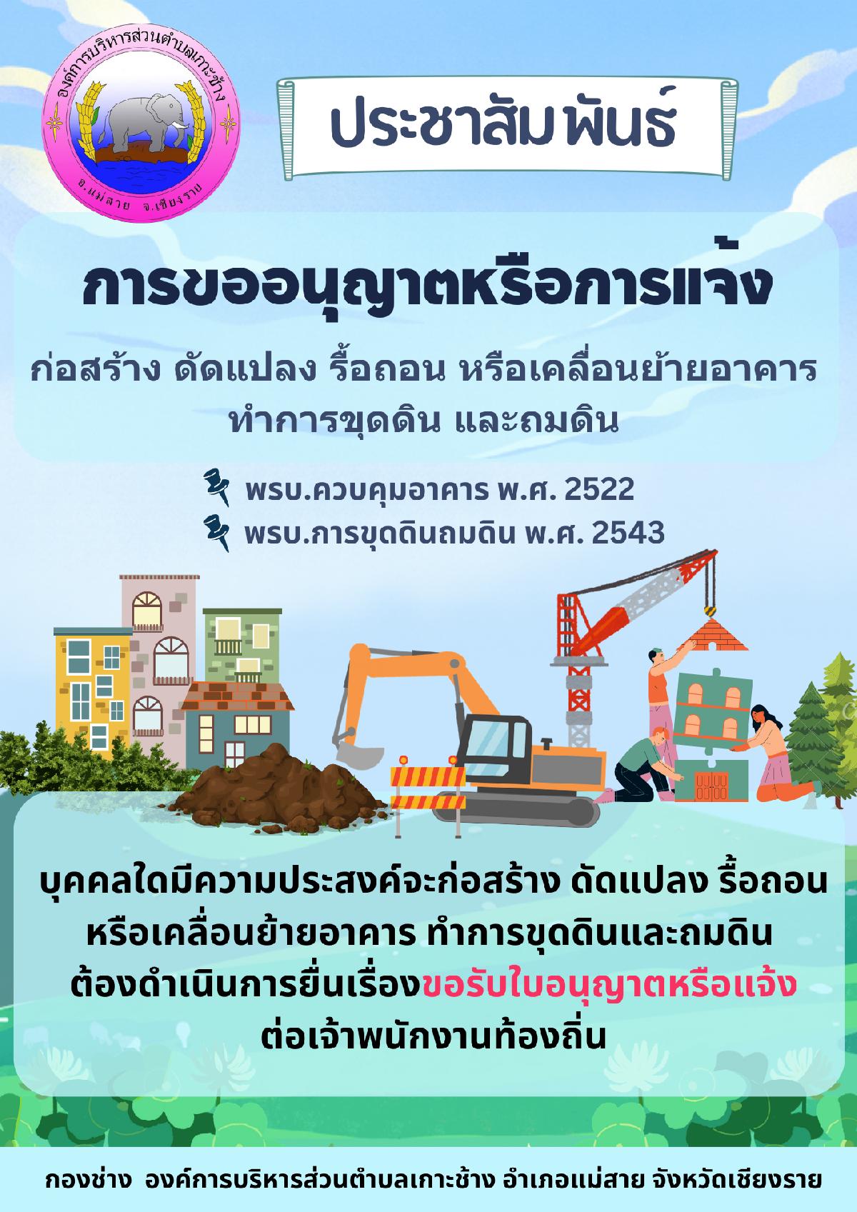 การขออนุญาตหรือแจ้งการก่อสร้าง ดัดแปลง รื้อถอน หรือเคลื่อนย้ายอาคาร ทำการขุดดิน และถมดิน